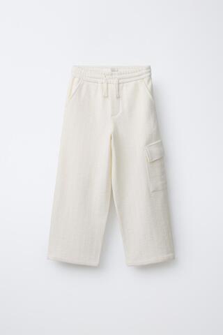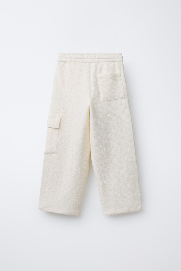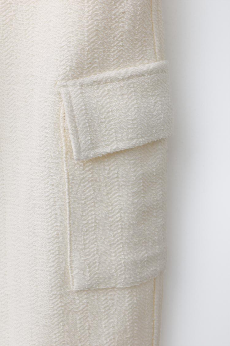 ZARA БРЮКИ КАРГО ИЗ РЕЛЬЕФНОЙ ТКАНИ, ЭКРЮ