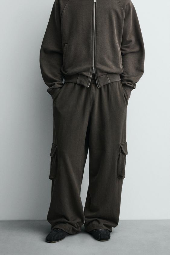 ZARA БРЮКИ КАРГО С ЭФФЕКТОМ ПОТЕРТОСТИ, КОРИЧНЕВЫЙ