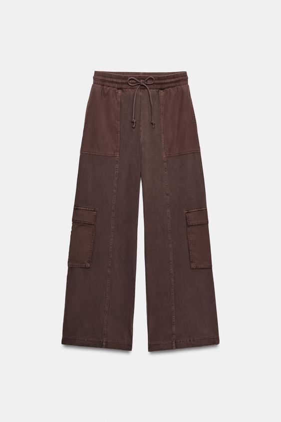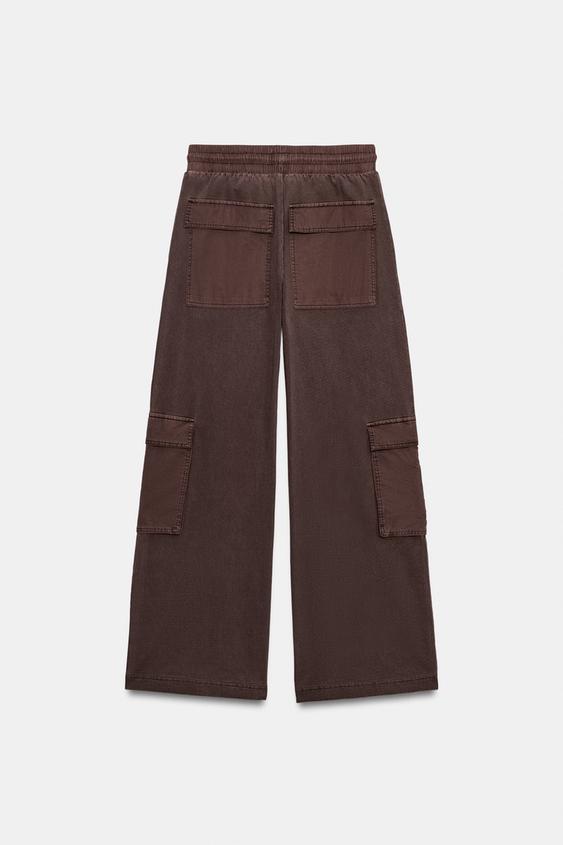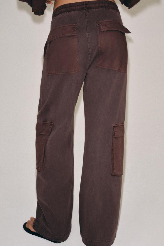 ZARA БРЮКИ КАРГО С ЭФФЕКТОМ ПОТЕРТОСТИ, КОРИЧНЕВЫЙ