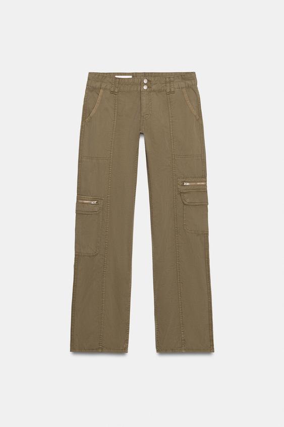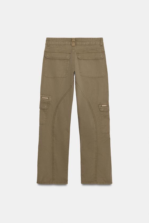 ZARA БРЮКИ КАРГО С МНОЖЕСТВОМ КАРМАНОВ, ЗЕЛЕНЫЙ