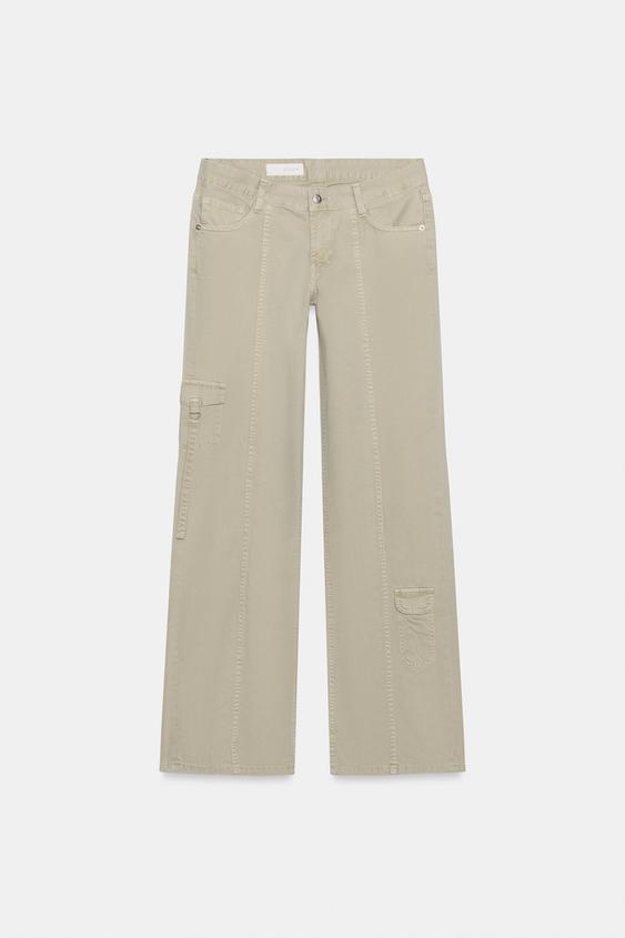 ZARA БРЮКИ КАРГО С ОТСТРОЧКОЙ, КАМЕННО-СЕРЫЙ