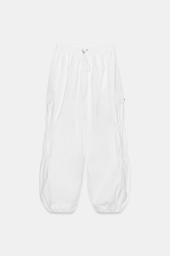 ZARA БРЮКИ КАРГО СО СТОППЕРОМ, БЕЛЫЙ