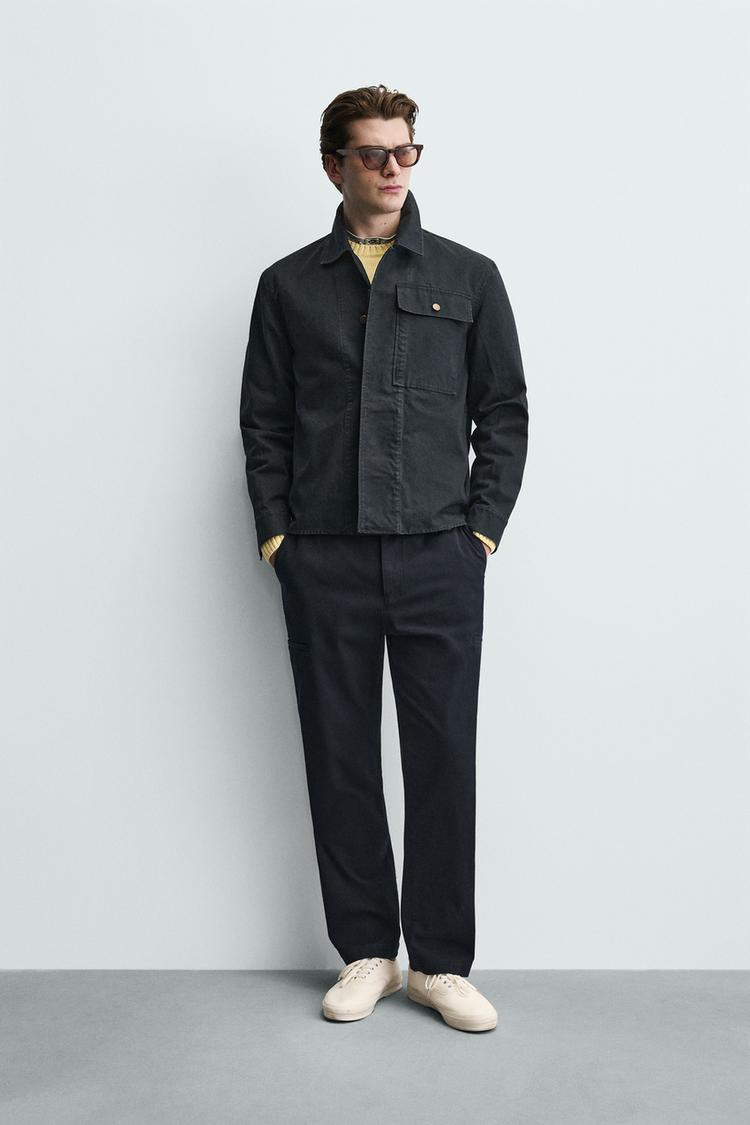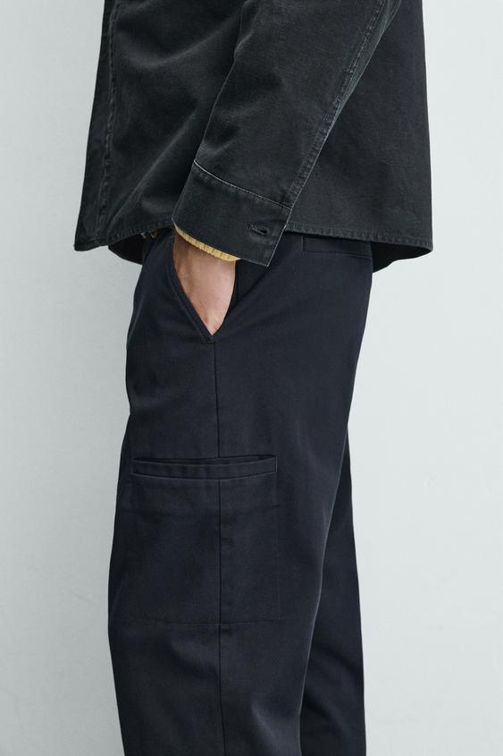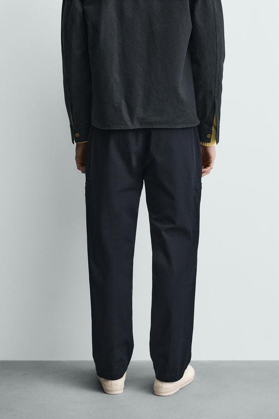 ZARA БРЮКИ КАРГО STRAIGHT FIT, МОРСКОЙ СИНИЙ