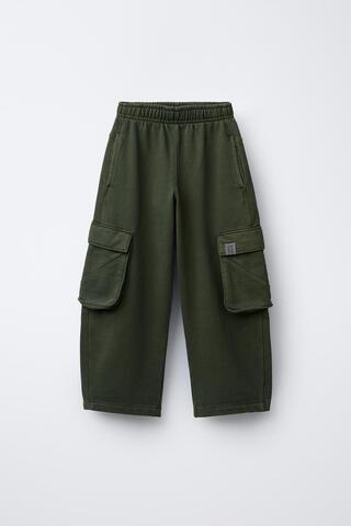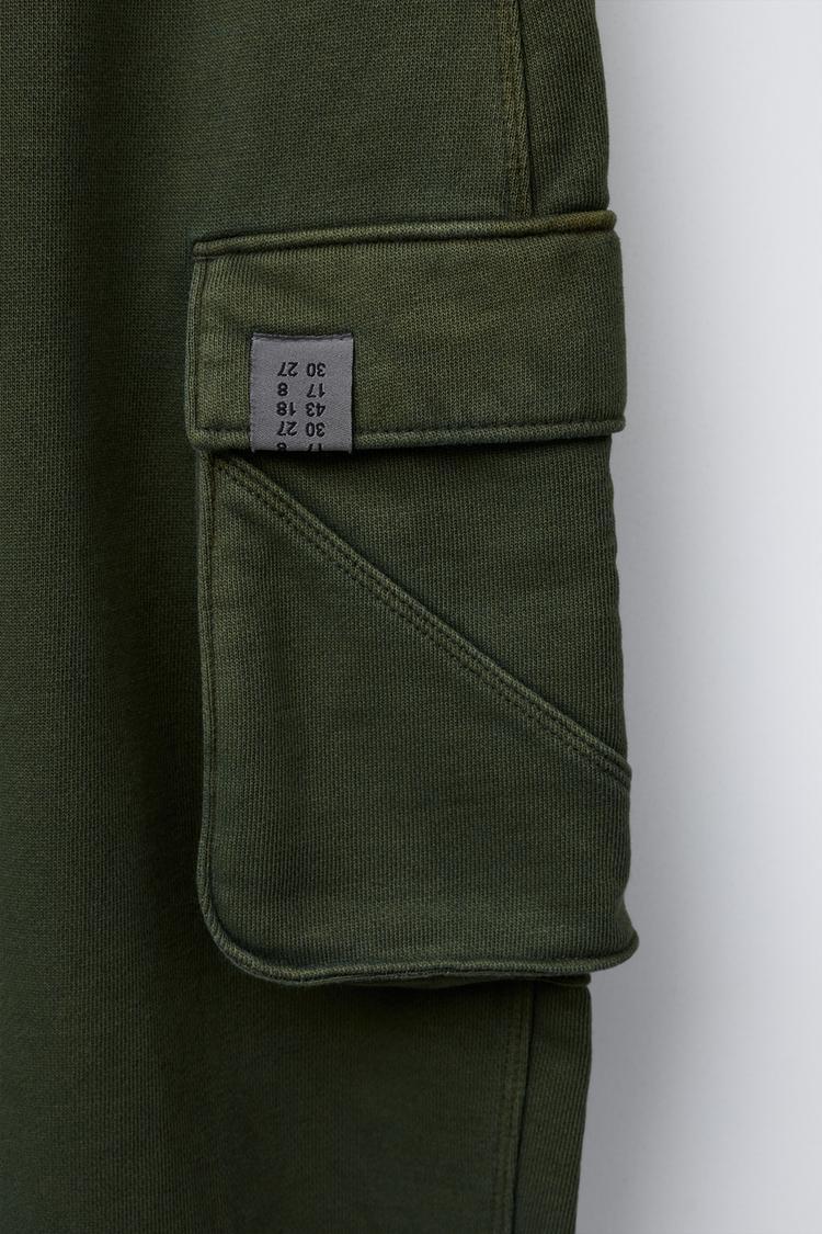 ZARA БРЮКИ КАРГО WIDE LEG ИЗ МЯГКОЙ ТКАНИ С ОКРАШИВАНИЕМ GARMENT DYE, ЗЕЛЕНЫЙ