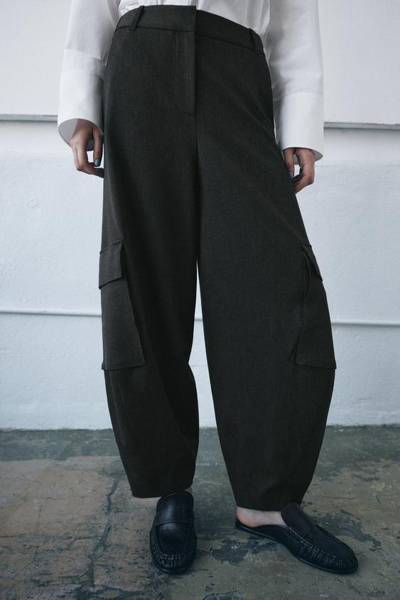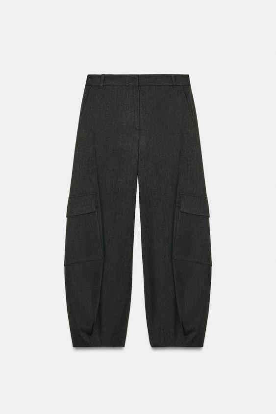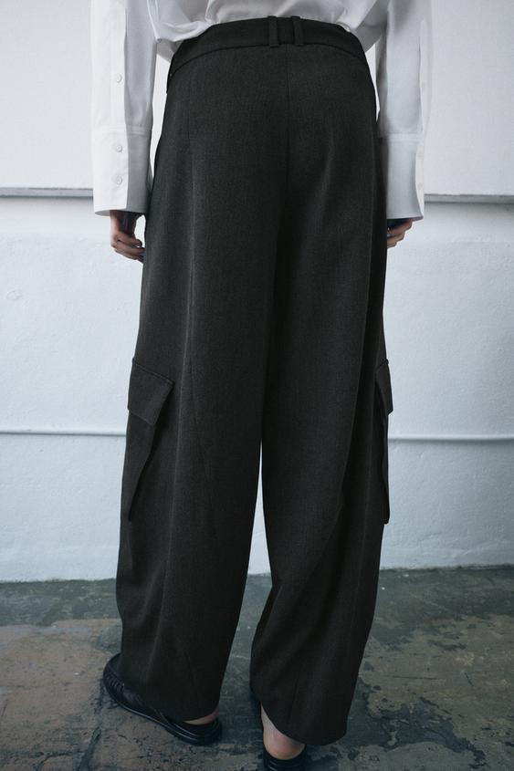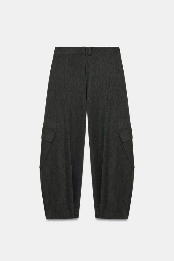 ZARA БРЮКИ КАРГО — ZW COLLECTION, ТЕМНО-СЕРЫЙ