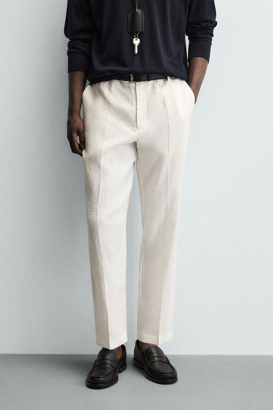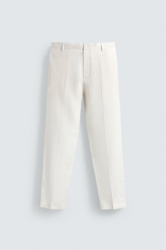 ZARA БРЮКИ КЛАССИЧЕСКОГО КРОЯ ИЗ 100% ЛЬНА, БЕЛЫЙ