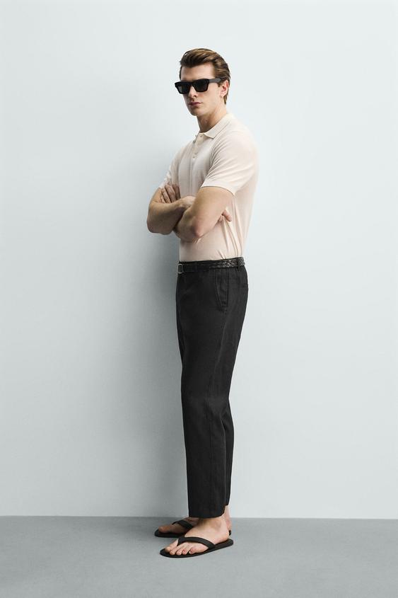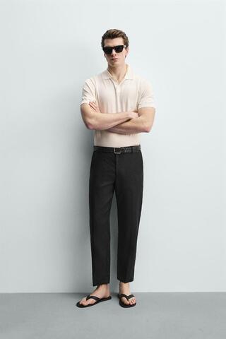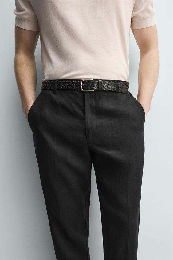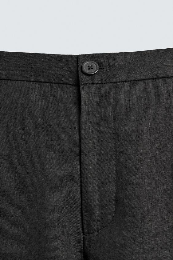 ZARA БРЮКИ КЛАССИЧЕСКОГО КРОЯ ИЗ 100% ЛЬНА, ЧЕРНЫЙ