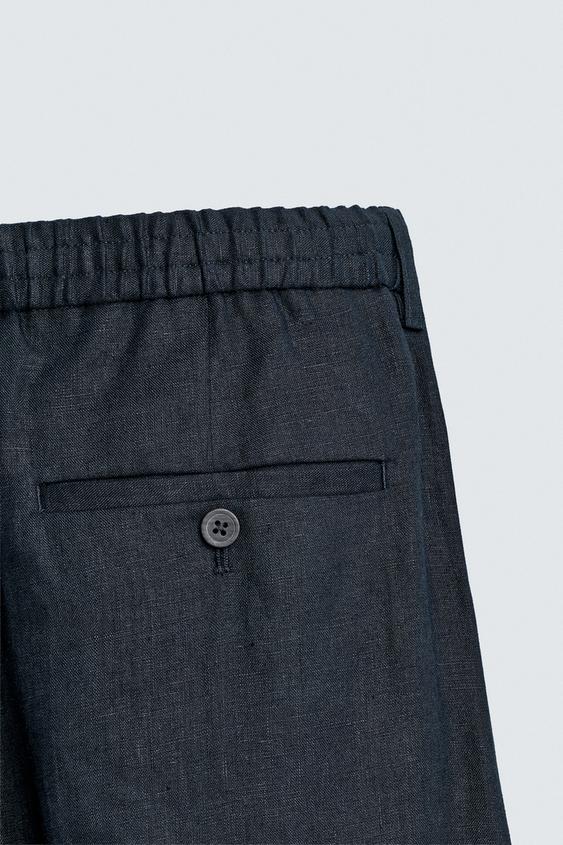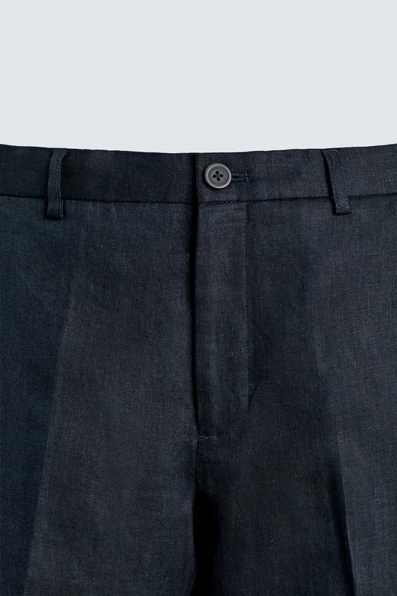 ZARA БРЮКИ КЛАССИЧЕСКОГО КРОЯ ИЗ 100% ЛЬНА, МОРСКОЙ СИНИЙ