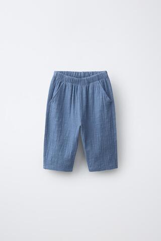 ZARA БРЮКИ КОМБИНИРОВАННОЙ ТЕКСТУРЫ, СИНИЙ