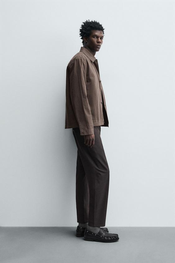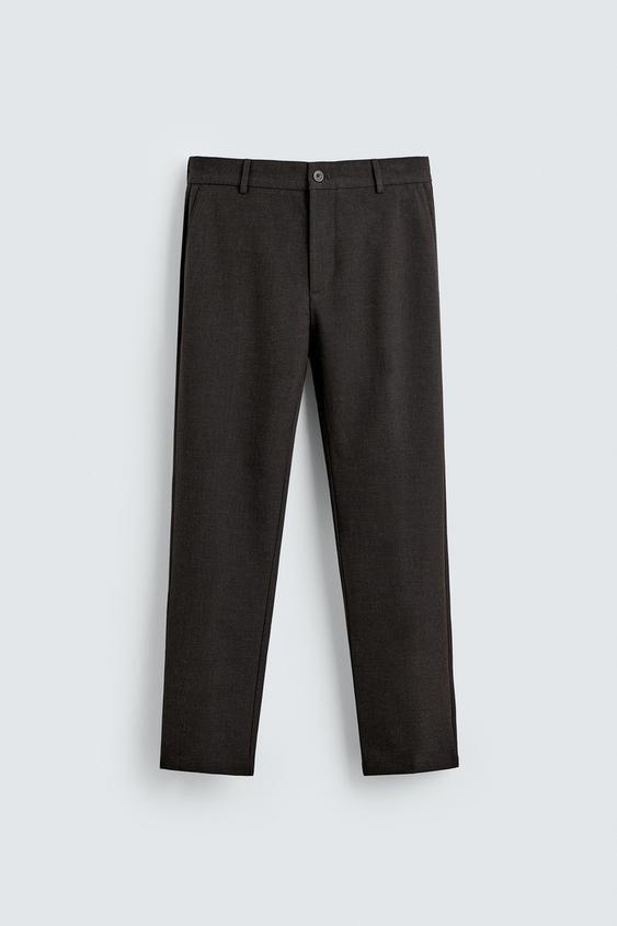 ZARA БРЮКИ КОМФОРТНОЙ ПОСАДКИ ИЗ РЕЛЬЕФНОЙ ТКАНИ, КОРИЧНЕВЫЙ