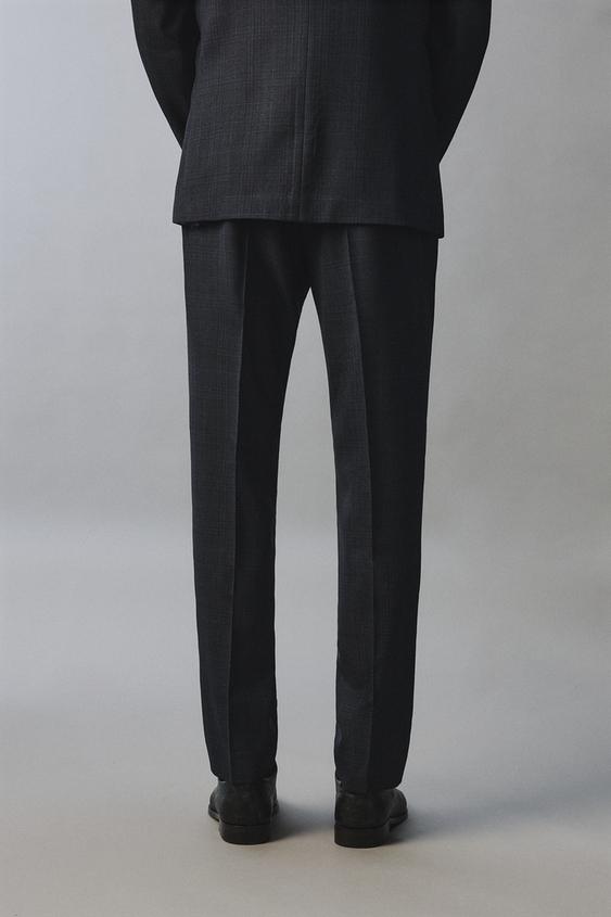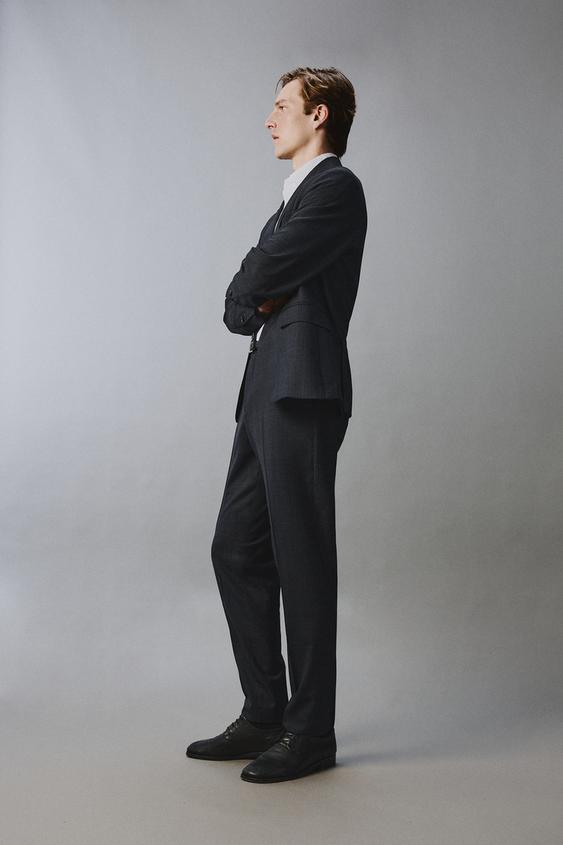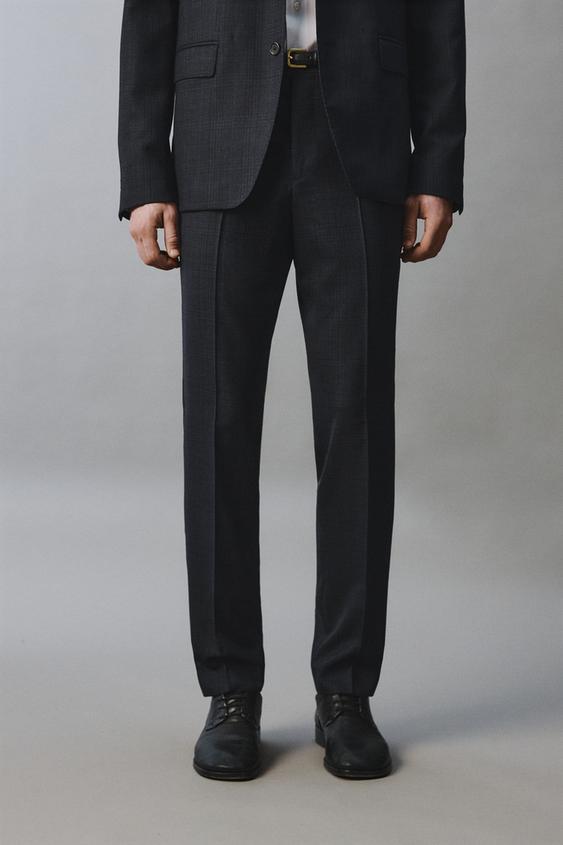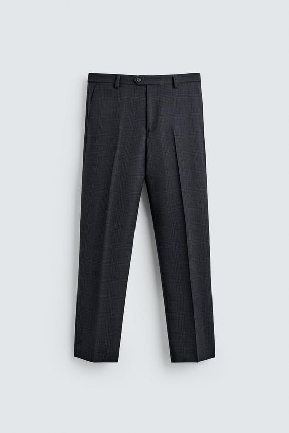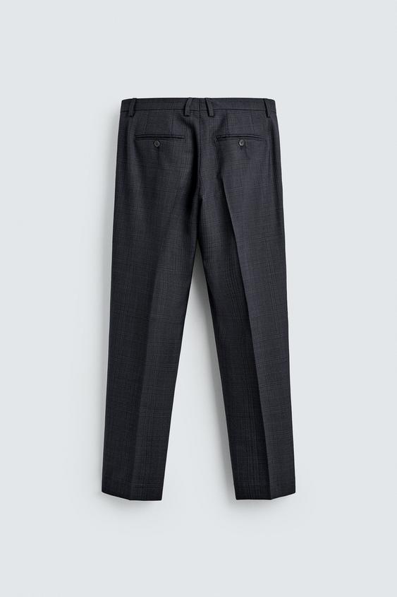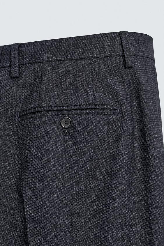 ZARA БРЮКИ КОСТЮМНЫЕ В КЛЕТКУ ИЗ 100% ШЕРСТИ, МОРСКОЙ СИНИЙ