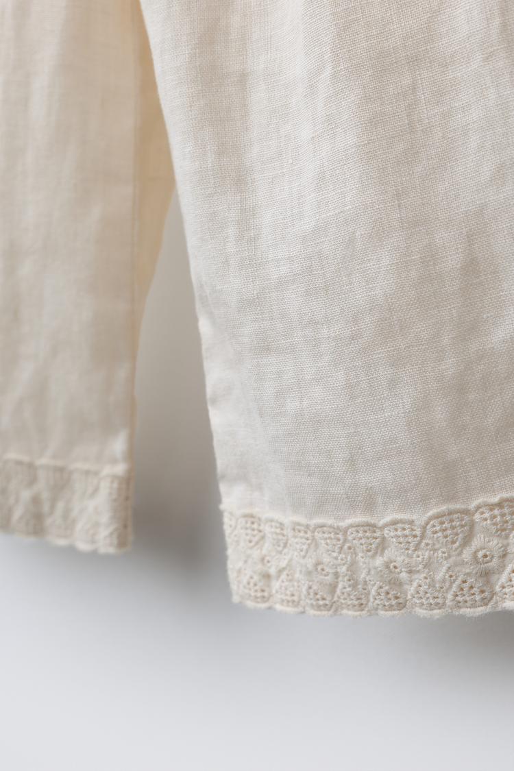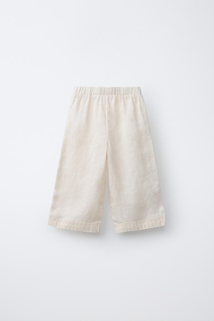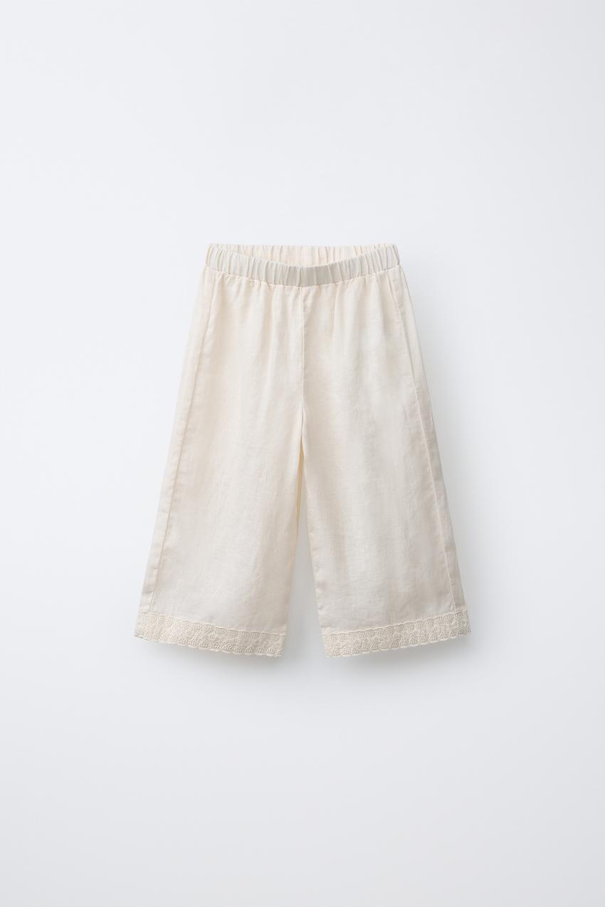 ZARA БРЮКИ-КЮЛОТЫ ИЗ 100% ЛЬНА С КРУЖЕВОМ, ЭКРЮ