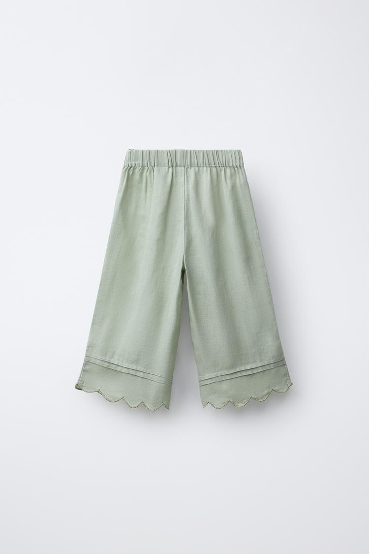 ZARA БРЮКИ-КЮЛОТЫ ИЗ 100% ЛЬНА, ЗЕЛЕНОВАТЫЙ