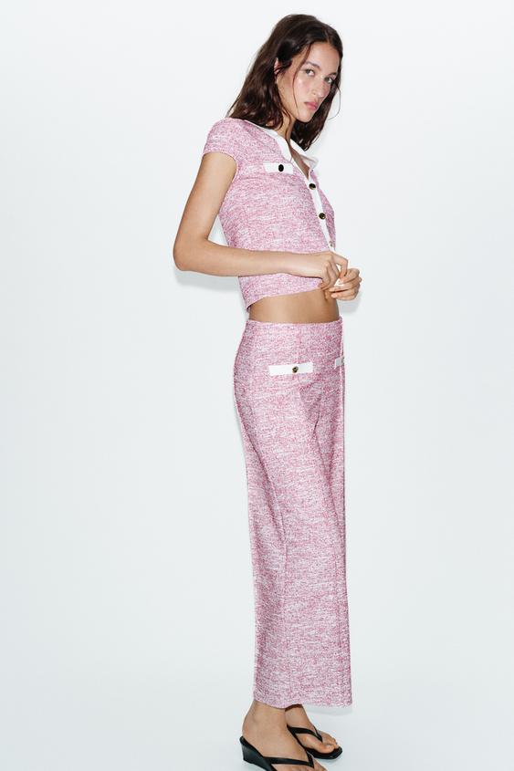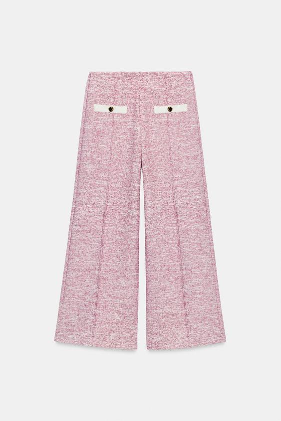 ZARA БРЮКИ-КЮЛОТЫ ИЗ РЕЛЬЕФНОЙ ТКАНИ, РОЗОВЫЙ МЕЛАНЖ