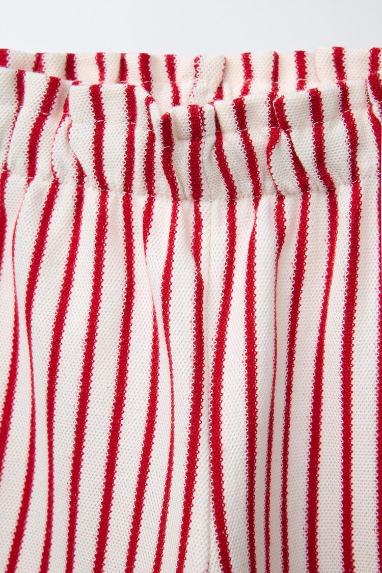 ZARA БРЮКИ-КЮЛОТЫ ИЗ ТКАНИ ПИКЕ В ПОЛОСКУ, КРАСНЫЙ