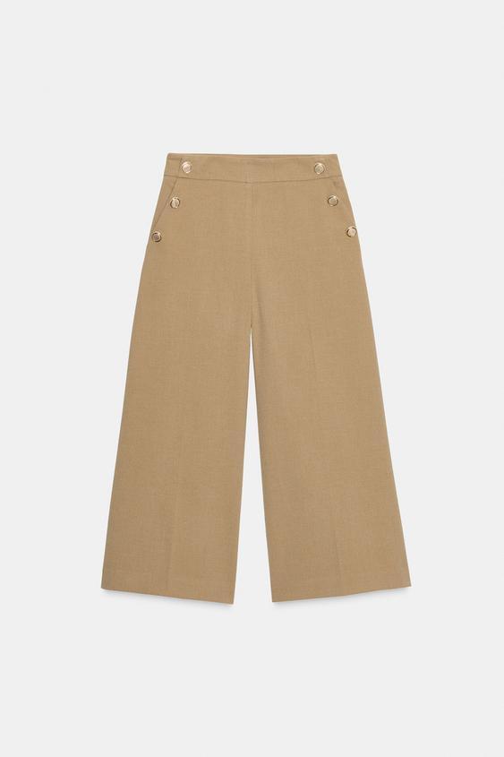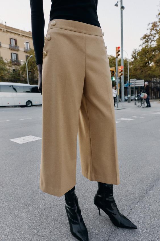 ZARA БРЮКИ-КЮЛОТЫ С ПУГОВИЦАМИ, РЫЖЕВАТО-КОРИЧНЕВЫЙ