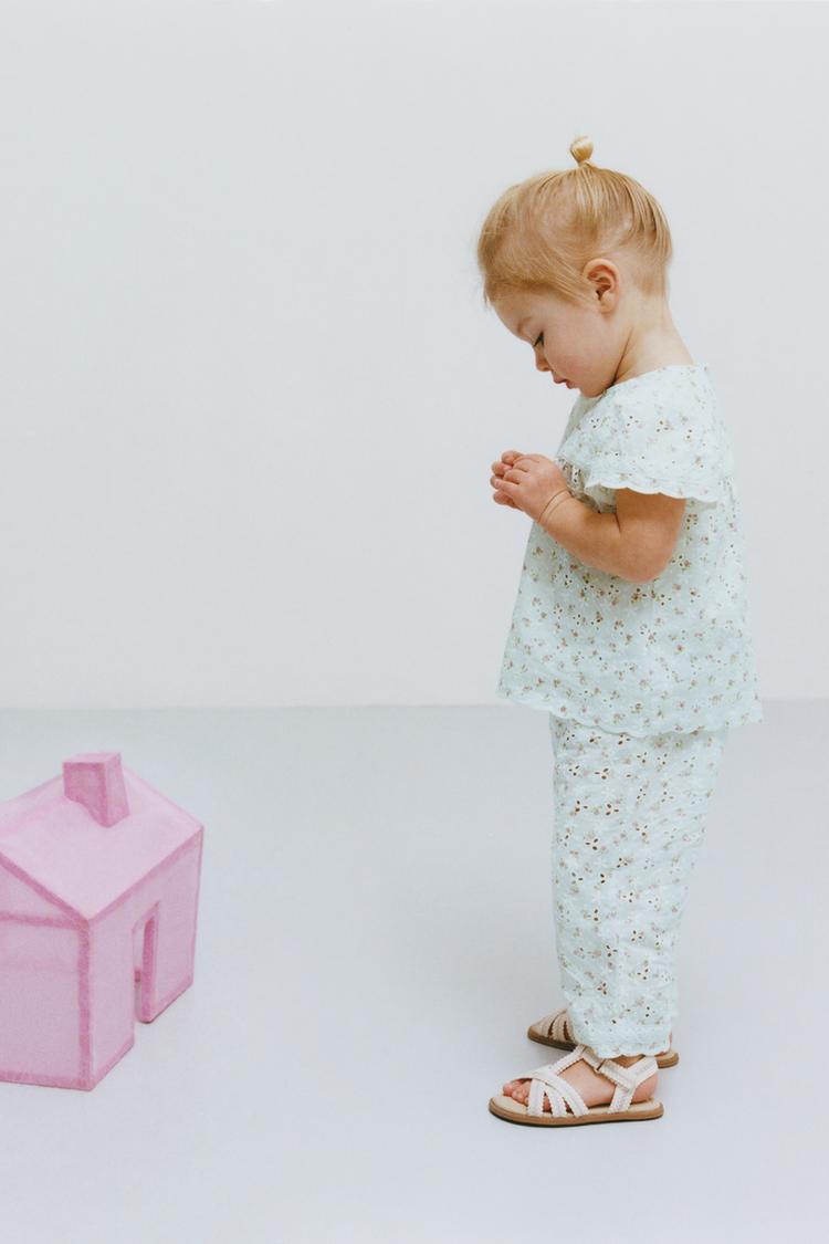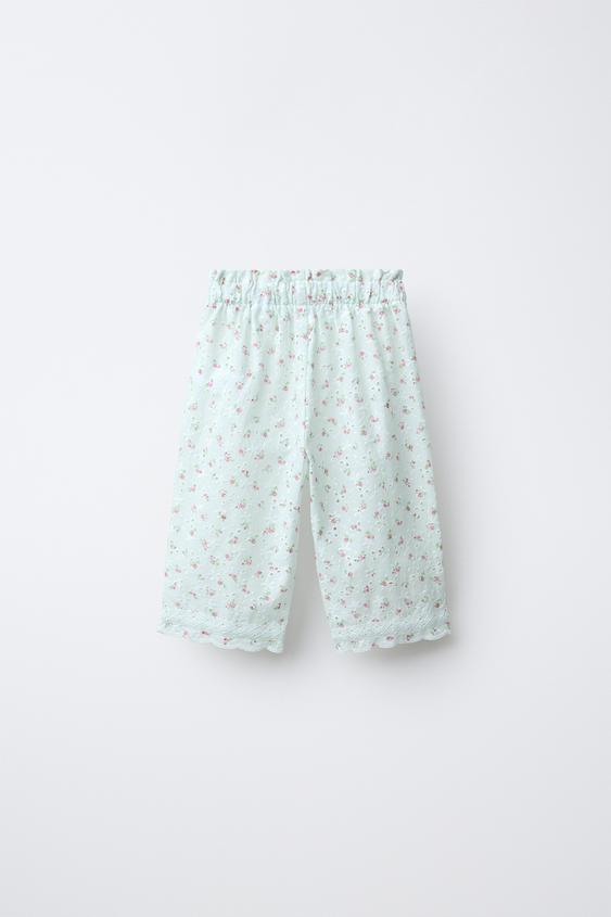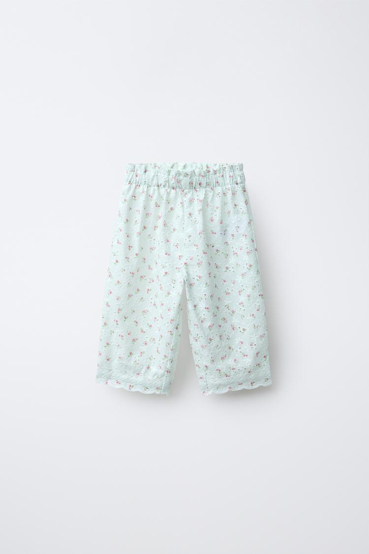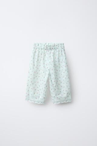 ZARA БРЮКИ-КЮЛОТЫ С ВЫШИВКОЙ В ШВЕЙЦАРСКОМ СТИЛЕ И ЦВЕТОЧНЫМ ПРИНТОМ, ЦВЕТ МОРСКОЙ ВОЛНЫ