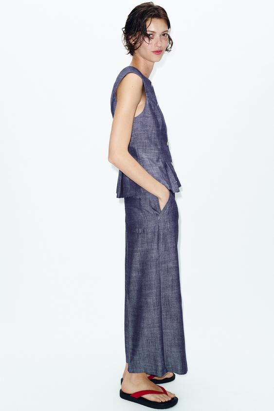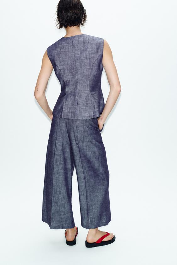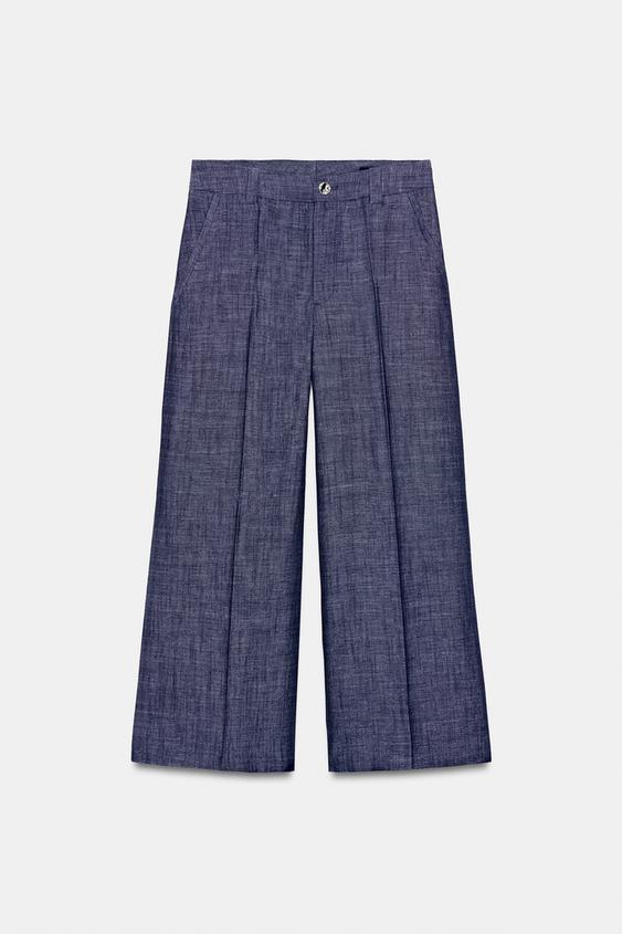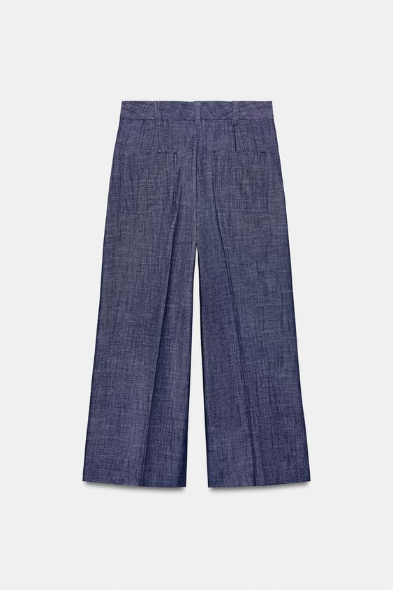 ZARA БРЮКИ-КЮЛОТЫ С ВЫСОКОЙ ПОСАДКОЙ, ИНДИГО