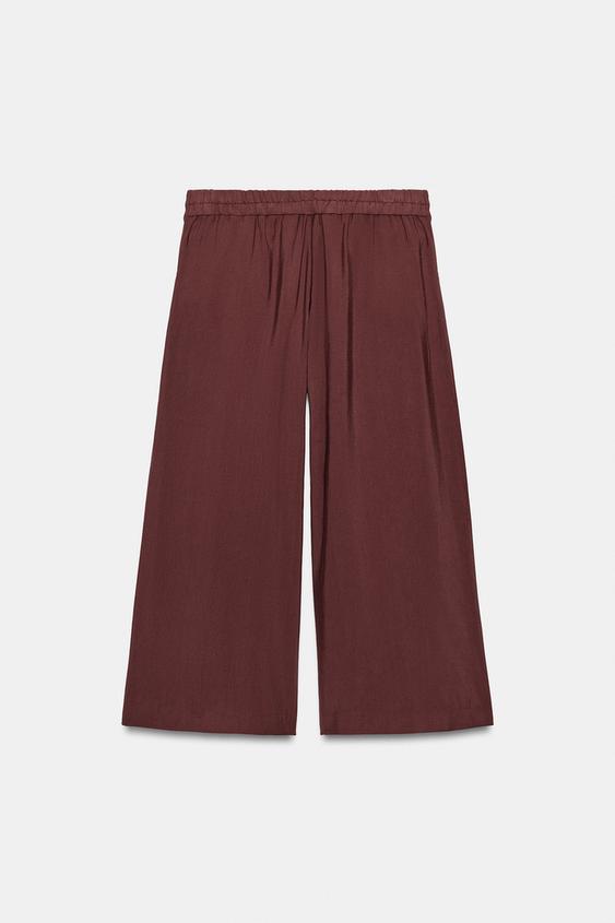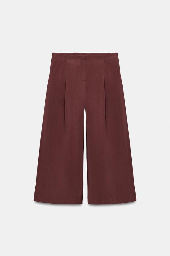 ZARA БРЮКИ-КЮЛОТЫ С ЗАЩИПАМИ, БОРДОВЫЙ