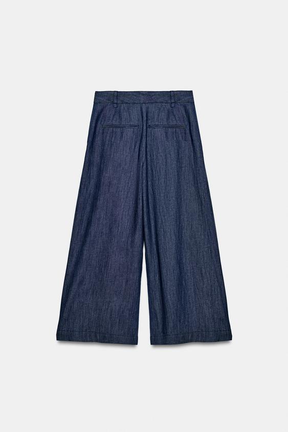 ZARA БРЮКИ-КЮЛОТЫ С ЗАЩИПАМИ, СИНИЙ