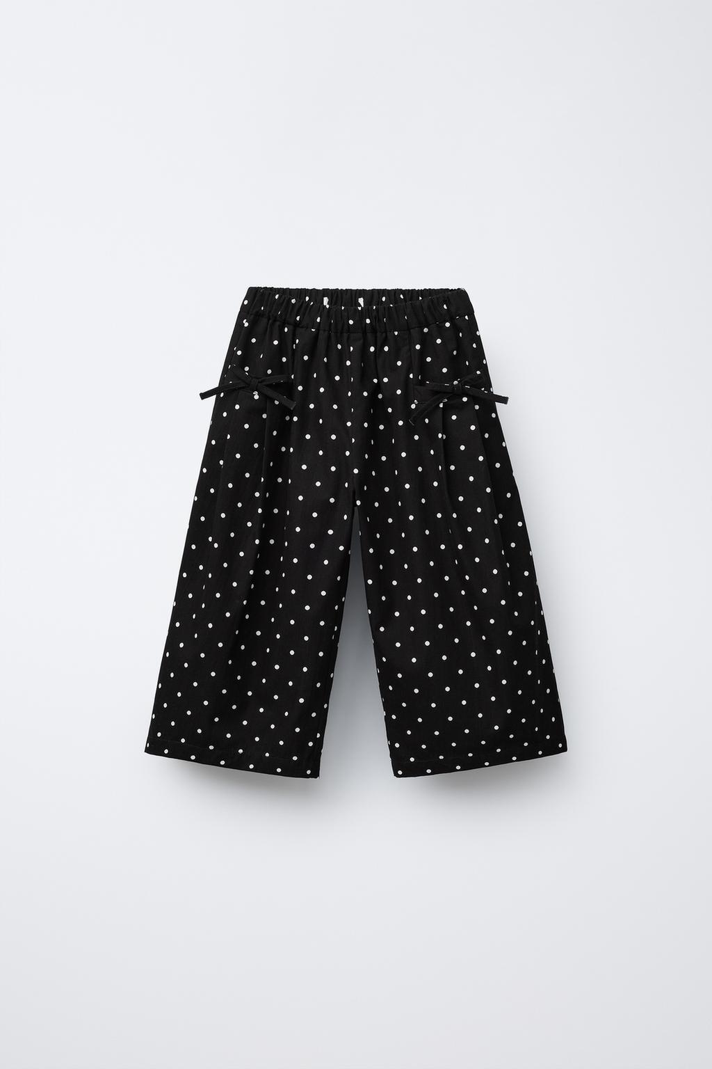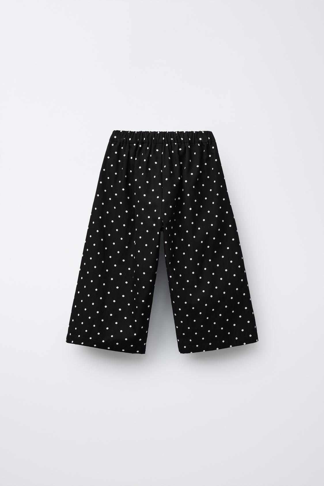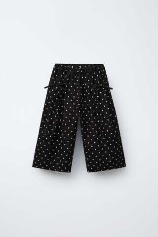 ZARA БРЮКИ-КЮЛОТЫ В ГОРОШЕК, ЧЕРНЫЙ