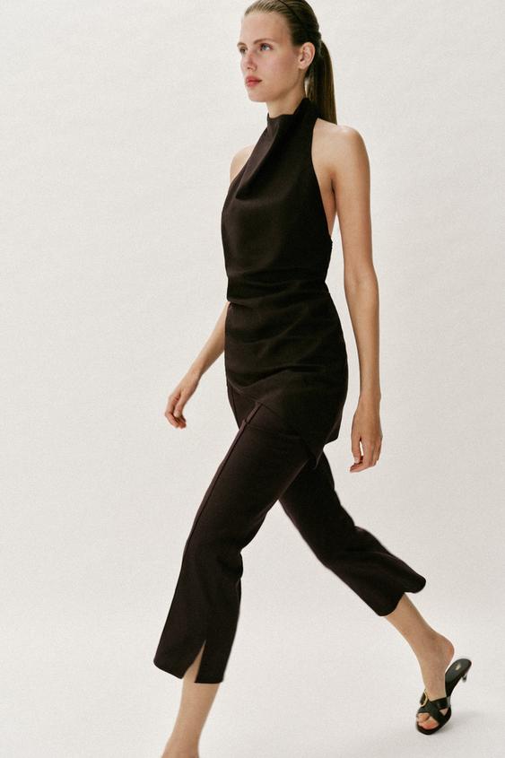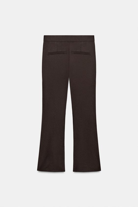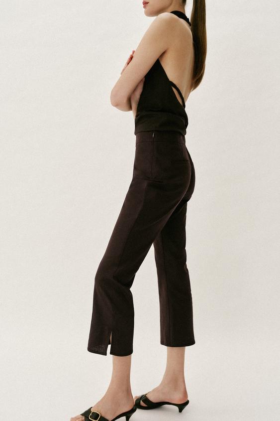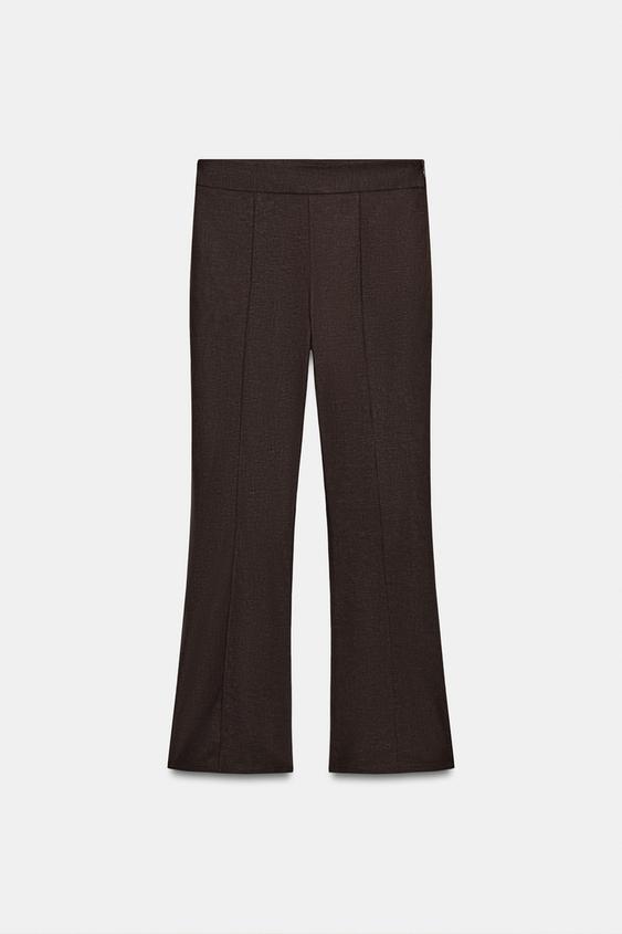 ZARA БРЮКИ МИНИ FLARE ИЗ ЛЬНА, ТЕМНО-КОРИЧНЕВЫЙ