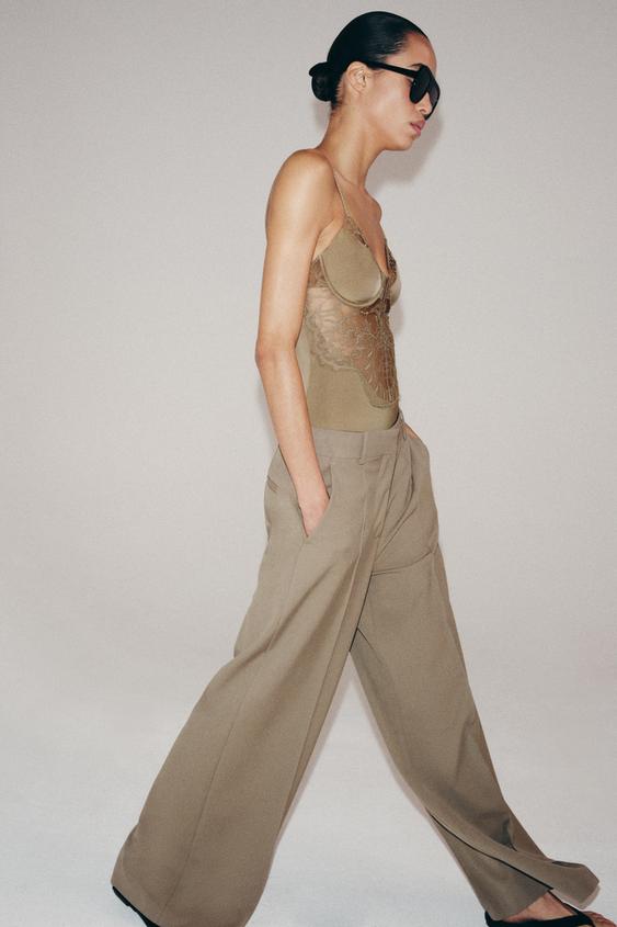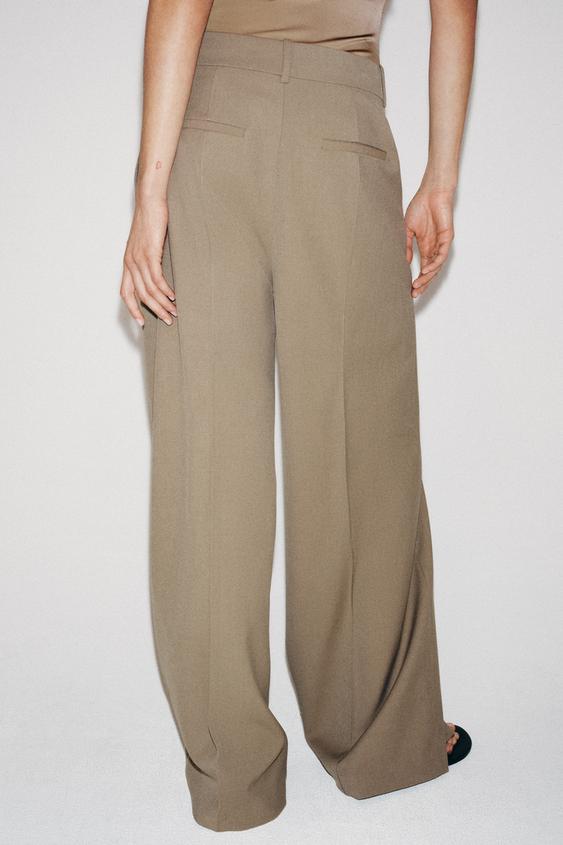 ZARA БРЮКИ MINIMAL WIDE LEG — ZW COLLECTION, СЕРО-КОРИЧНЕВЫЙ