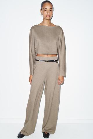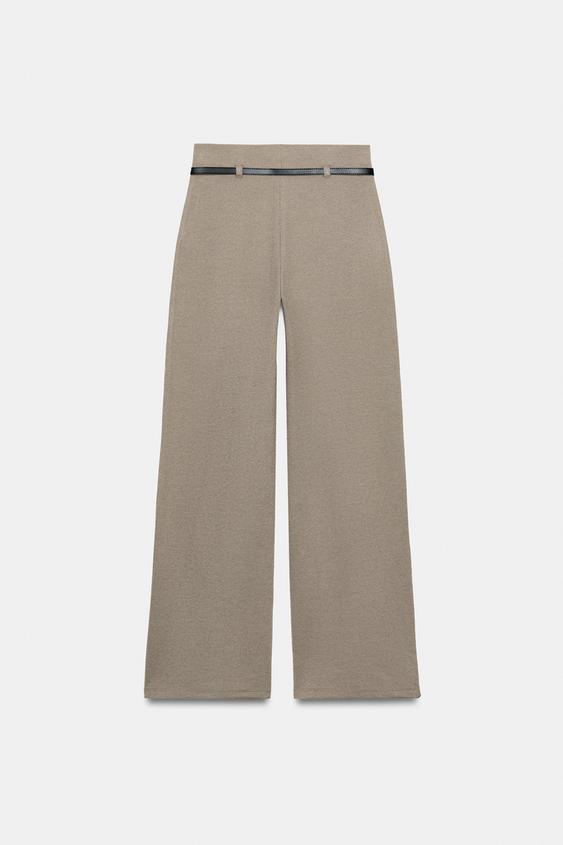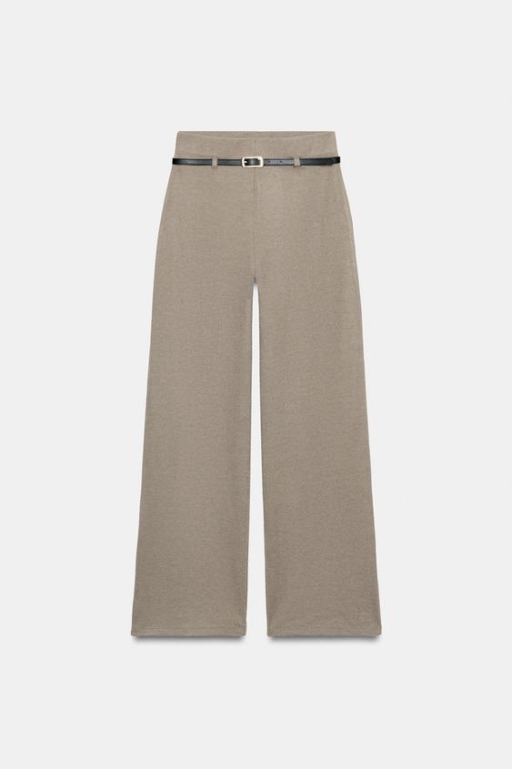 ZARA БРЮКИ ПАЛАЦЦО С РЕМНЕМ, БЕЖЕВЫЙ