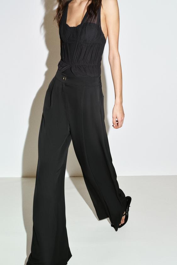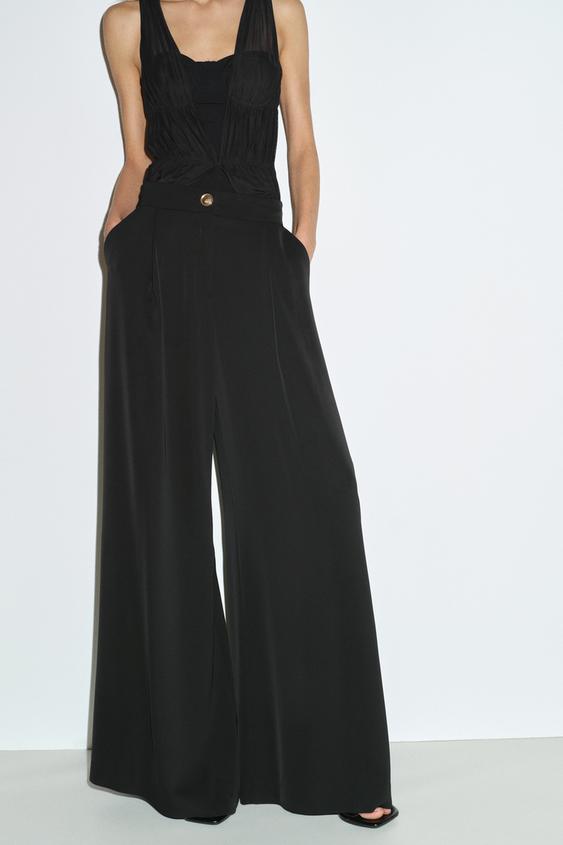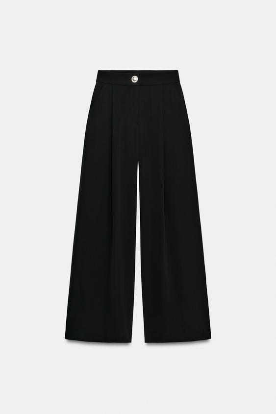 ZARA БРЮКИ-ПАЛАЦЦО С ЗОЛОТИСТОЙ ПУГОВИЦЕЙ, ЧЕРНЫЙ