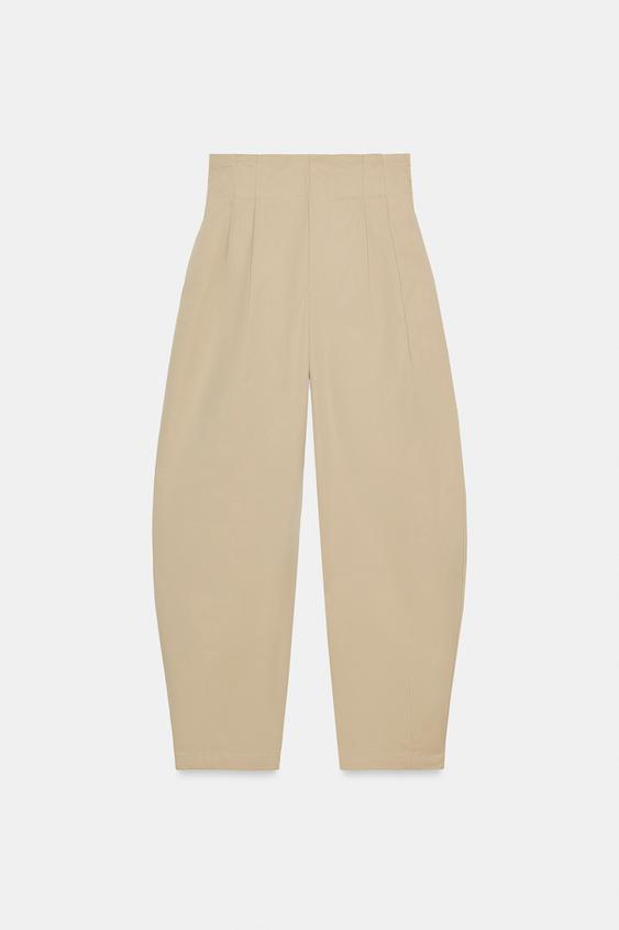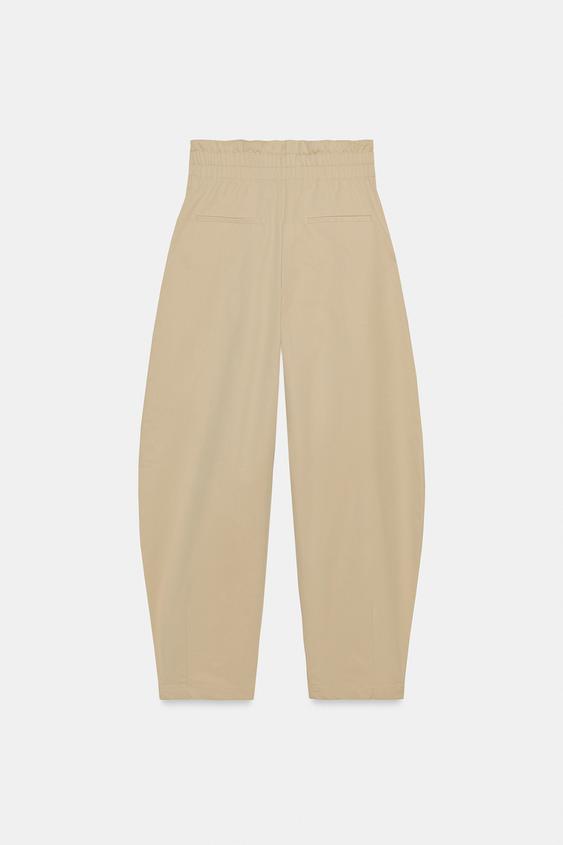 ZARA БРЮКИ PAPERBAG GLOBO, СВЕТЛЫЙ ЖЕЛТО-КОРИЧНЕВЫЙ
