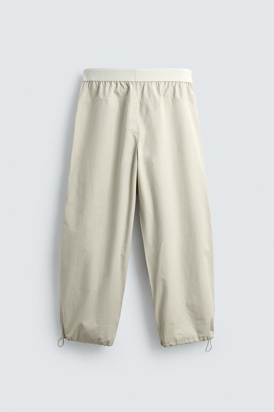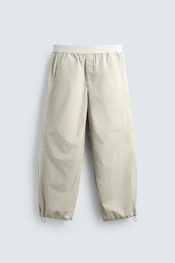 ZARA БРЮКИ-ПАРАШЮТ RELAXED FIT, КАМЕННО-СЕРЫЙ