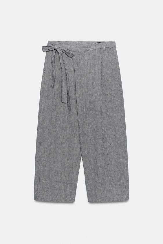 ZARA БРЮКИ-ПАРЕО В КЛЕТКУ «ГУСИНАЯ ЛАПКА» — ZW COLLECTION, СИНИЙ/БЕЛЫЙ