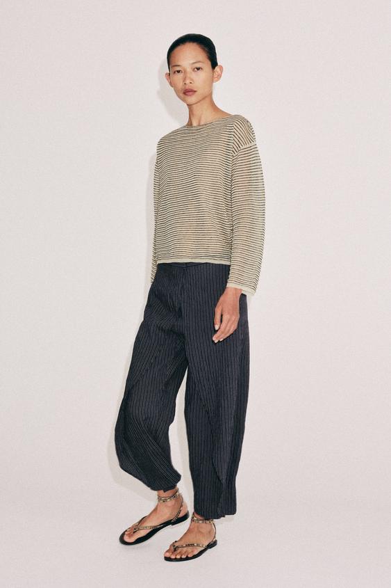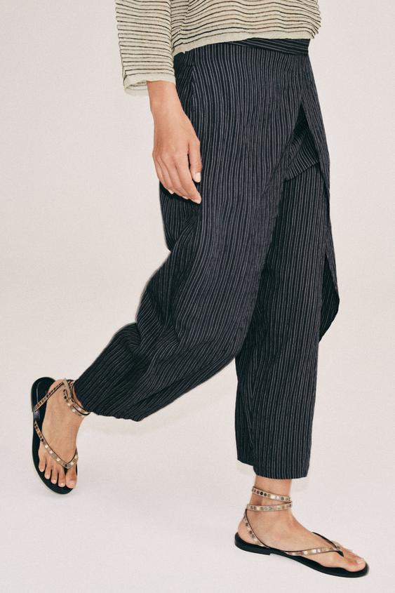 ZARA БРЮКИ-ПАРЕО В ПОЛОСКУ — ZW COLLECTION, МОРСКОЙ СИНИЙ