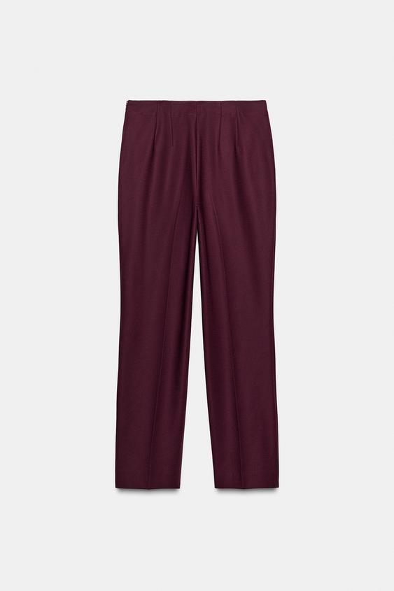 ZARA БРЮКИ ПРИТАЛЕННОГО КРОЯ, БОРДОВЫЙ