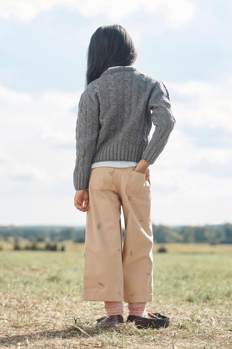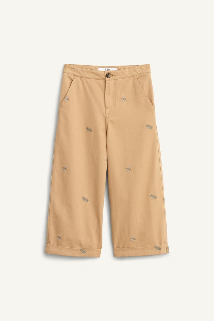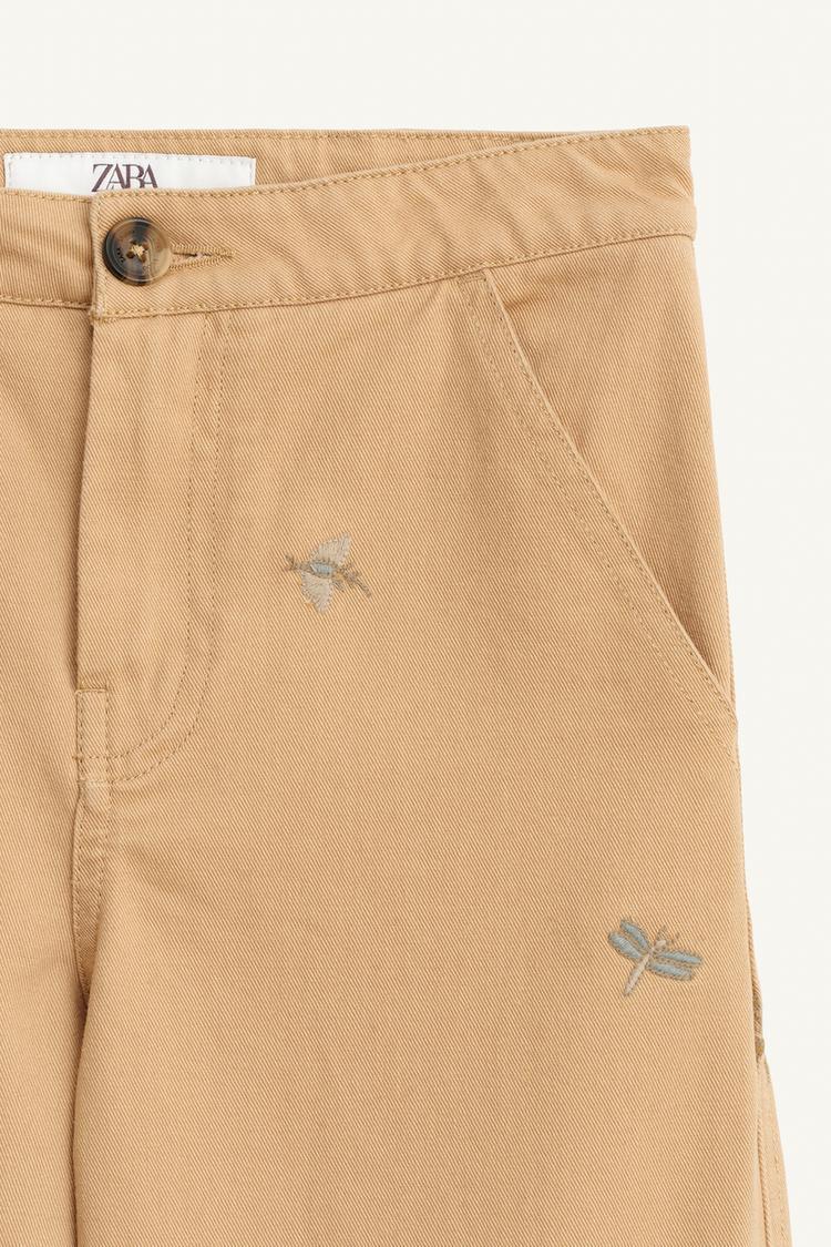 ZARA БРЮКИ ПРЯМОГО КРОЯ С ВЫШИВКОЙ, БЕЖЕВЫЙ