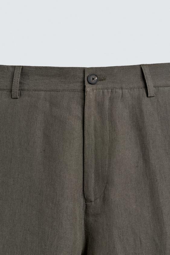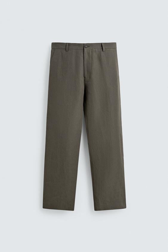 ZARA БРЮКИ ПРЯМОГО КРОЯ ИЗ 100% ЛЬНА LIMITED EDITION, ЗЕЛЕНЫЙ/СЕРЫЙ