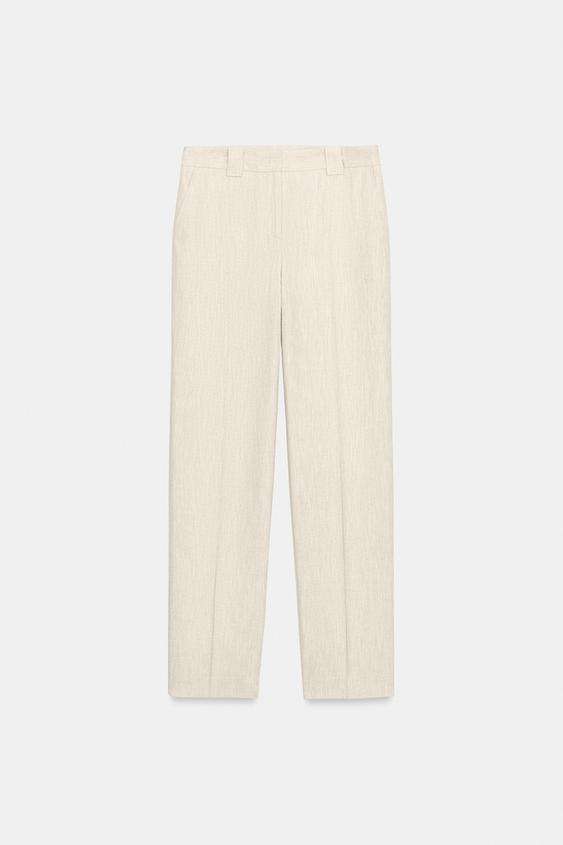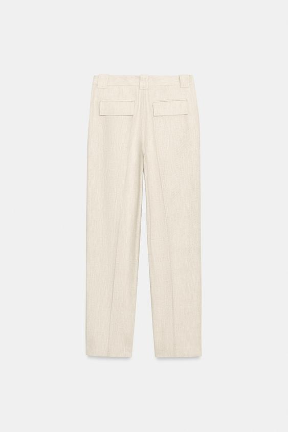 ZARA БРЮКИ ПРЯМОГО КРОЯ ИЗ РЕЛЬЕФНОЙ ТКАНИ, СВЕТЛО-БЕЖЕВЫЙ