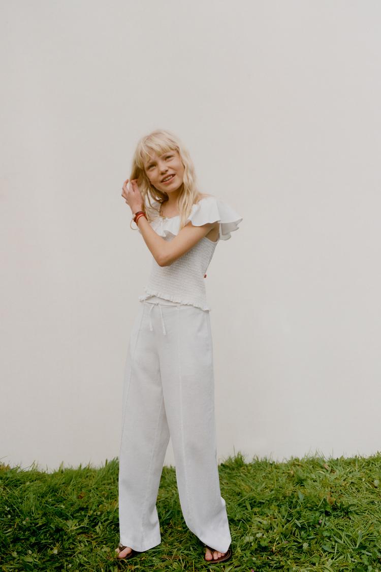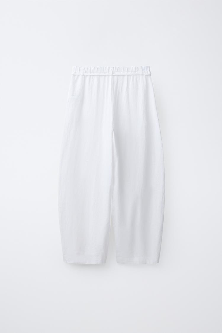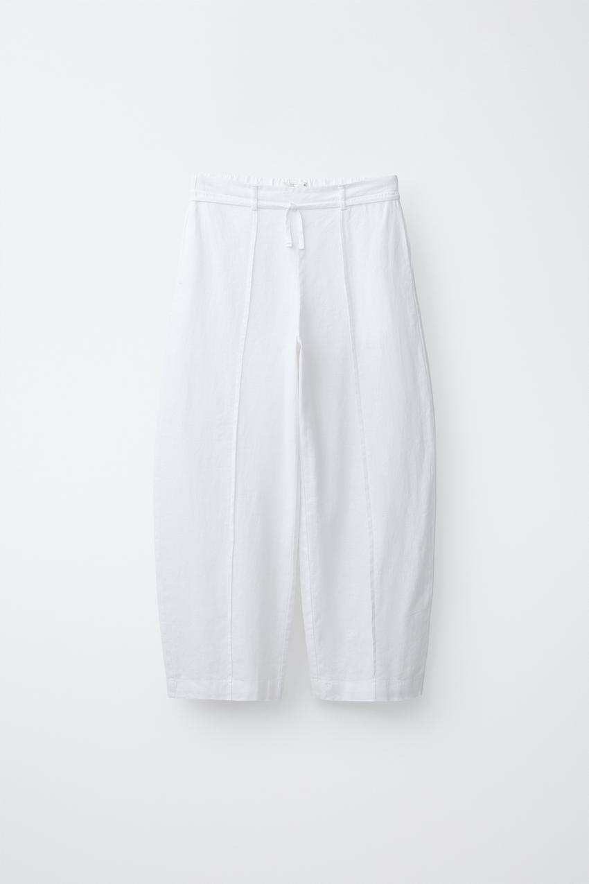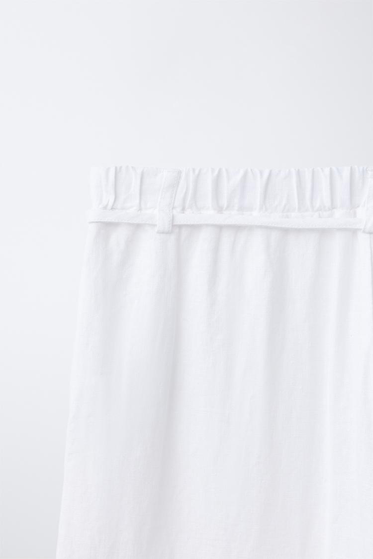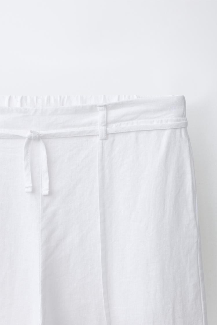 ZARA БРЮКИ ПРЯМОГО КРОЯ ИЗ СМЕСОВОГО ЛЬНА СО ШНУРКОМ, ЖЕЛТОВАТО-БЕЛЫЙ