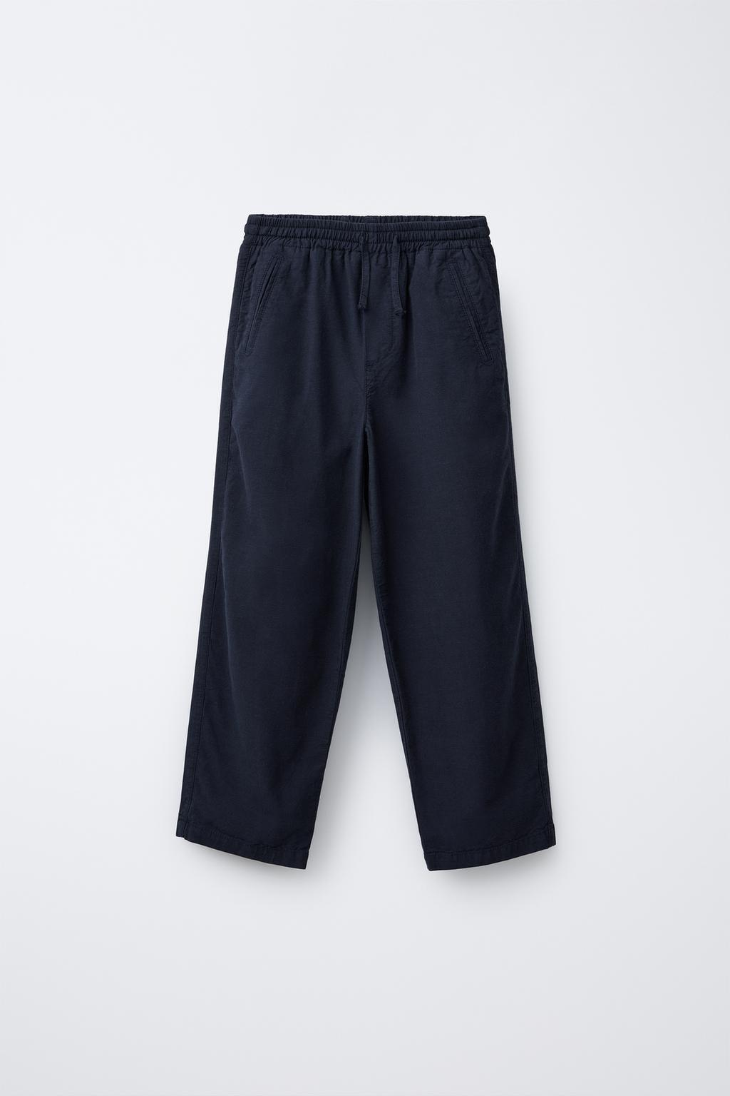 ZARA БРЮКИ ПРЯМОГО КРОЯ ИЗ СТРУЯЩЕЙСЯ ТКАНИ, ИНДИГО