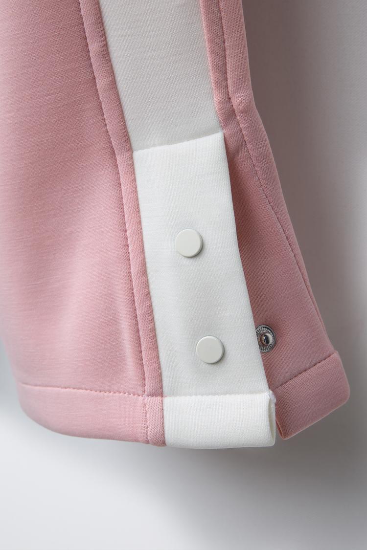 Брюки прямого кроя с эластичным поясом и шнурками. Контрастные лампасы. Застегиваются на кнопки снизу.
