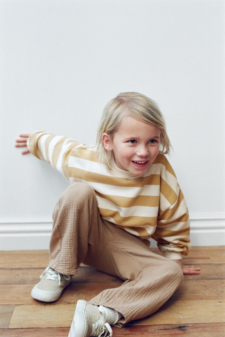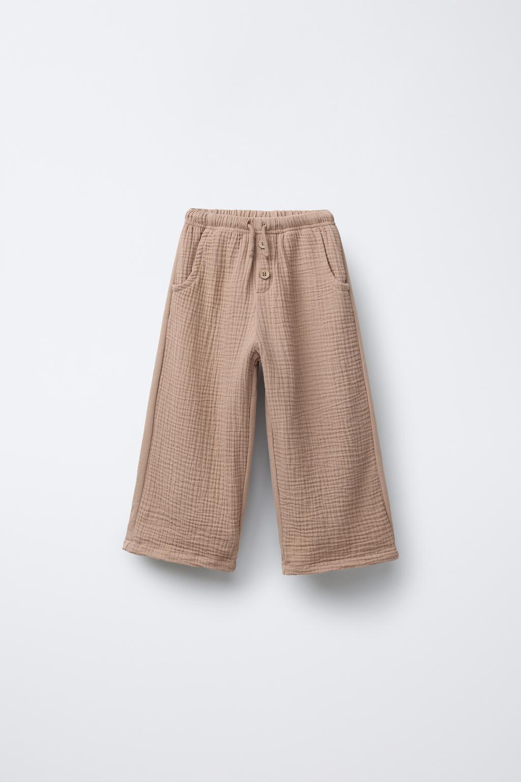 ZARA БРЮКИ ПРЯМОГО КРОЯ С КОНТРАСТНОЙ ТЕКСТУРОЙ, СВЕТЛО-КОРИЧНЕВЫЙ