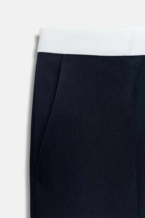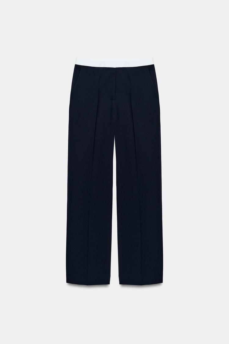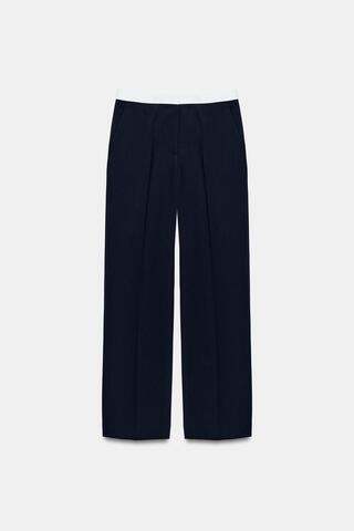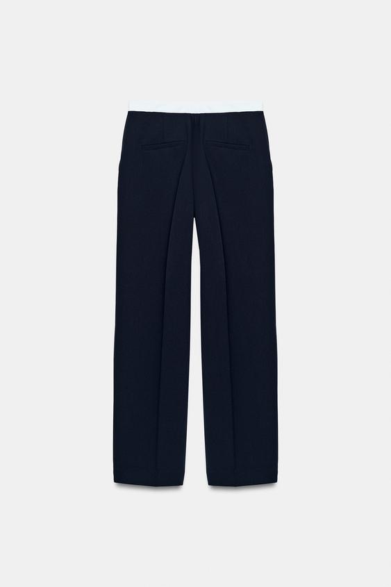 ZARA БРЮКИ ПРЯМОГО КРОЯ С КОНТРАСТНЫМ ПОЯСОМ, МОРСКОЙ СИНИЙ