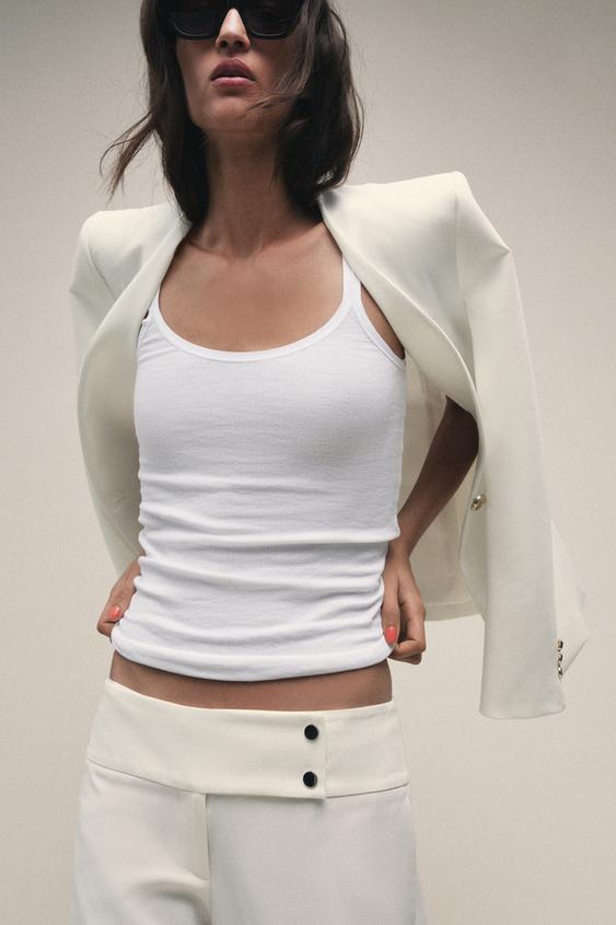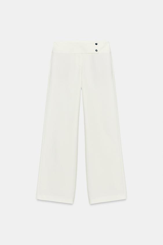 ZARA БРЮКИ ПРЯМОГО КРОЯ С НИЗКОЙ ПОСАДКОЙ, ЭКРЮ