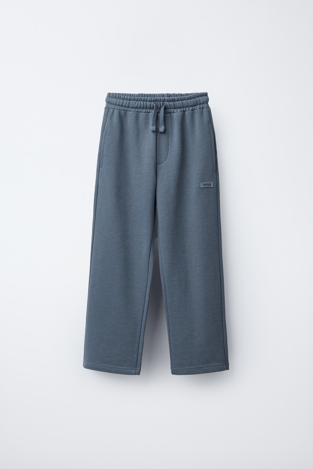 ZARA БРЮКИ ПРЯМОГО КРОЯ С ПРОРЕЗИНЕННОЙ НАШИВКОЙ, СЕРЫЙ/СИНИЙ