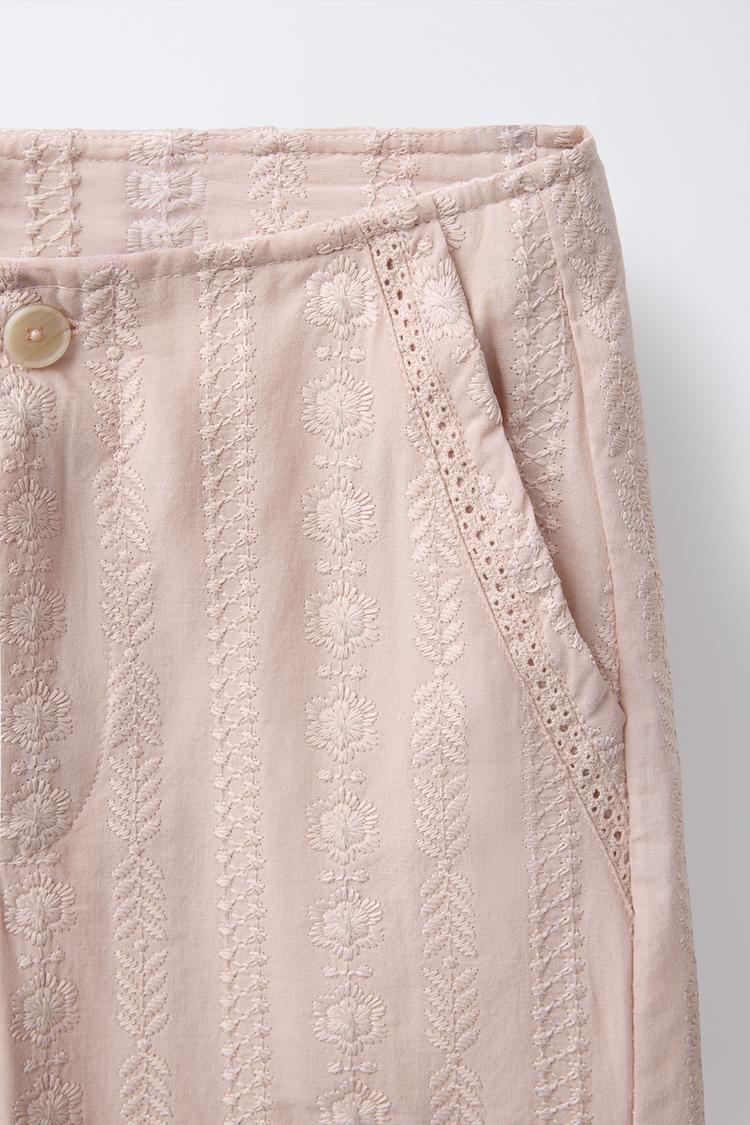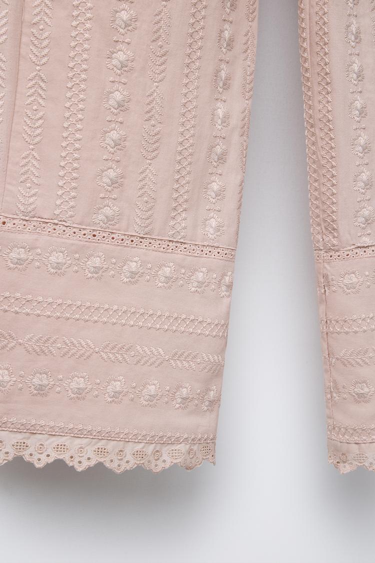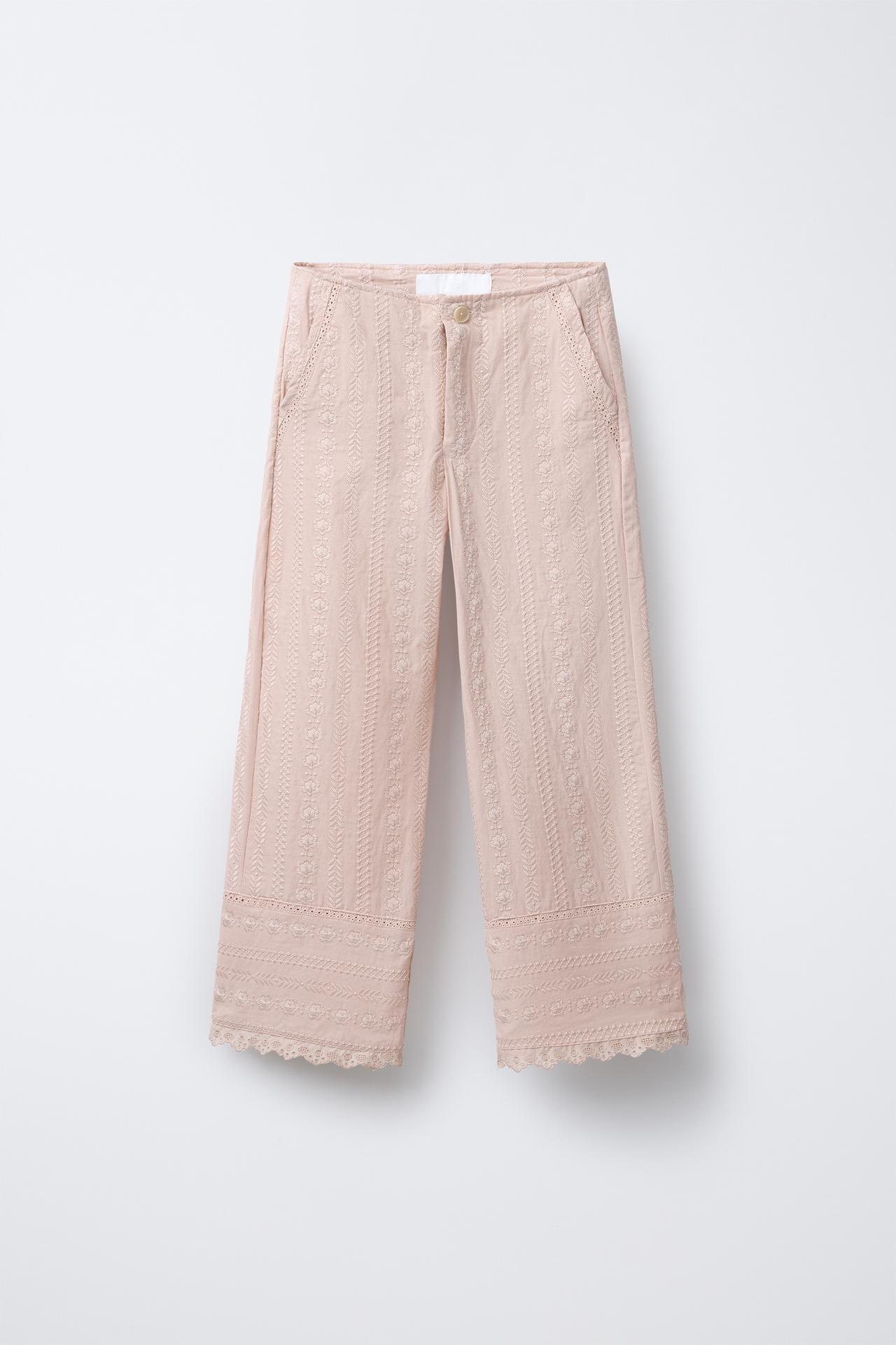 ZARA БРЮКИ ПРЯМОГО КРОЯ С ВЫШИВКОЙ, ЦВЕТ РОЗОВОГО ДЕРЕВА