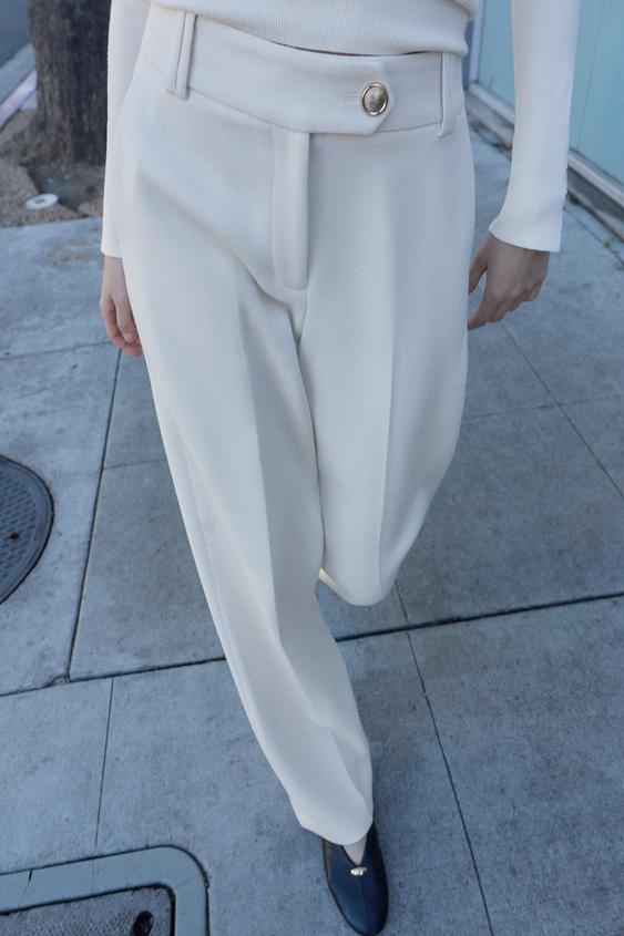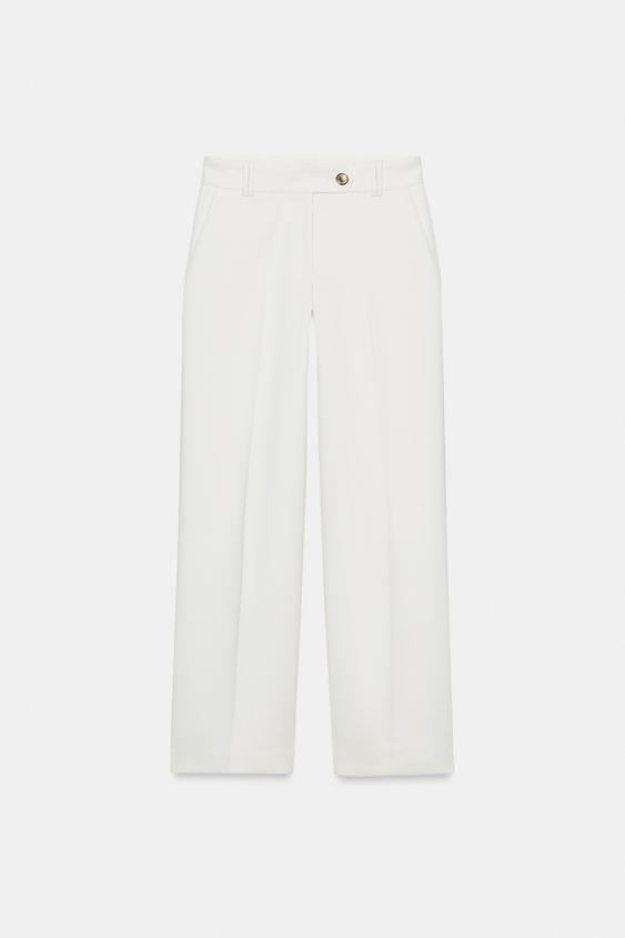 ZARA БРЮКИ ПРЯМОГО КРОЯ С ВЫСОКОЙ ПОСАДКОЙ, ЭКРЮ