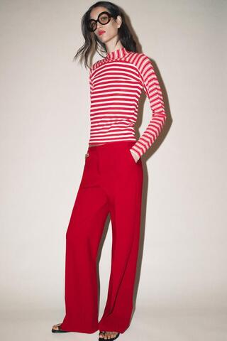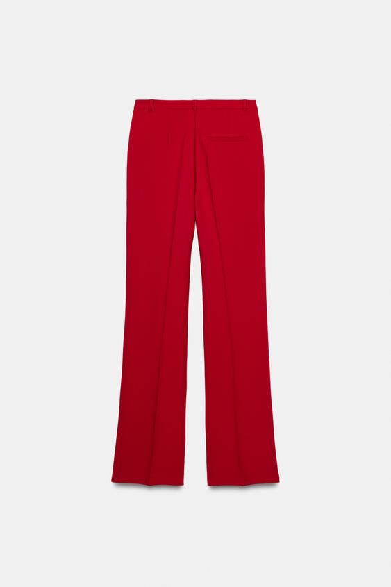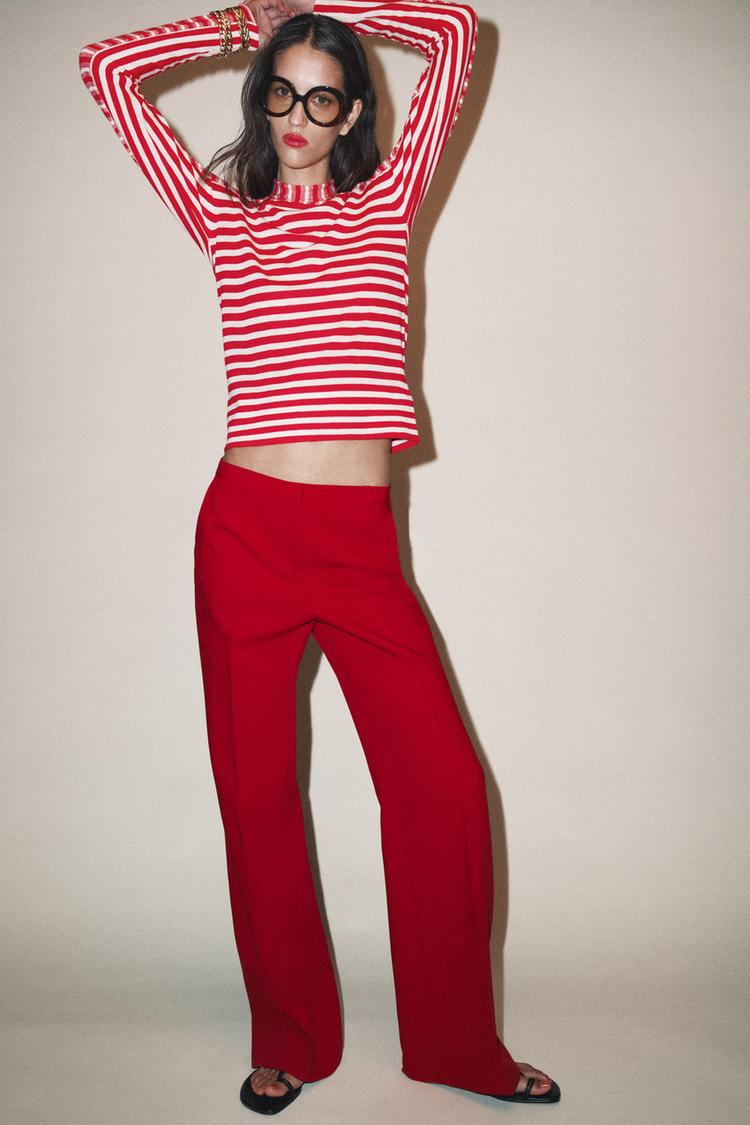 ZARA БРЮКИ ПРЯМОГО КРОЯ С ВЫСОКОЙ ПОСАДКОЙ, КРАСНЫЙ