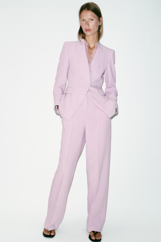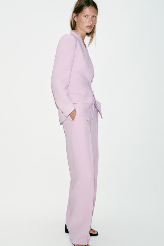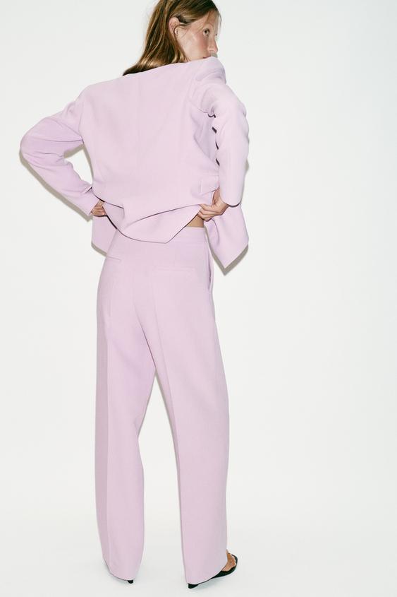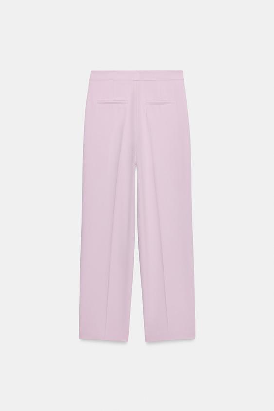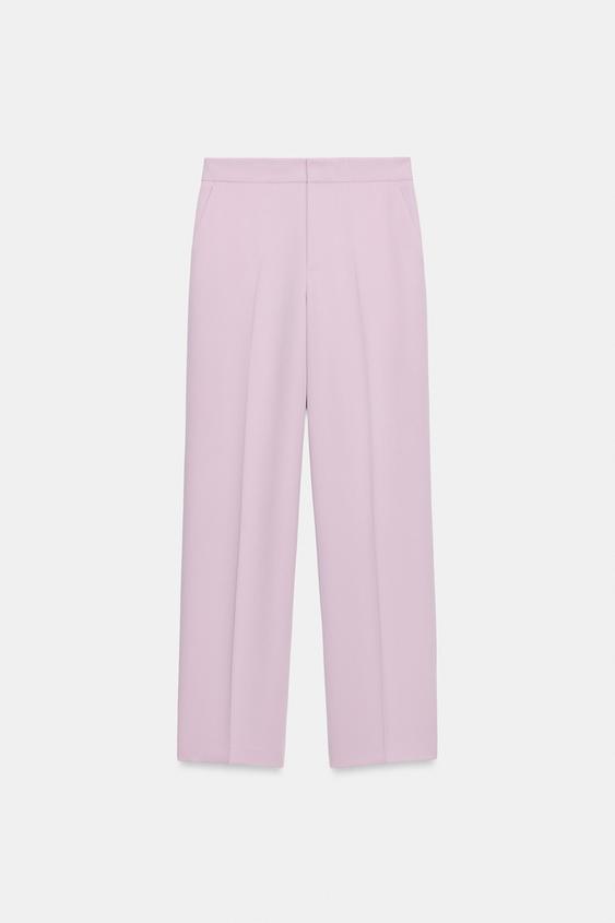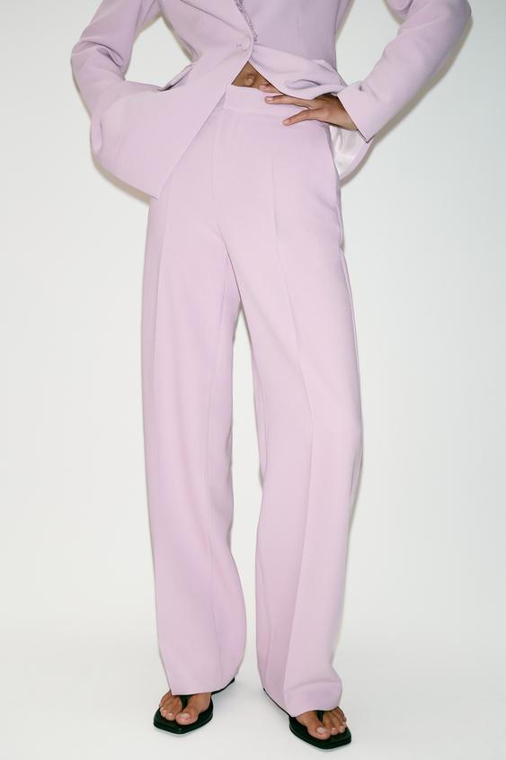 ZARA БРЮКИ ПРЯМОГО КРОЯ С ВЫСОКОЙ ПОСАДКОЙ, СИРЕНЕВЫЙ
