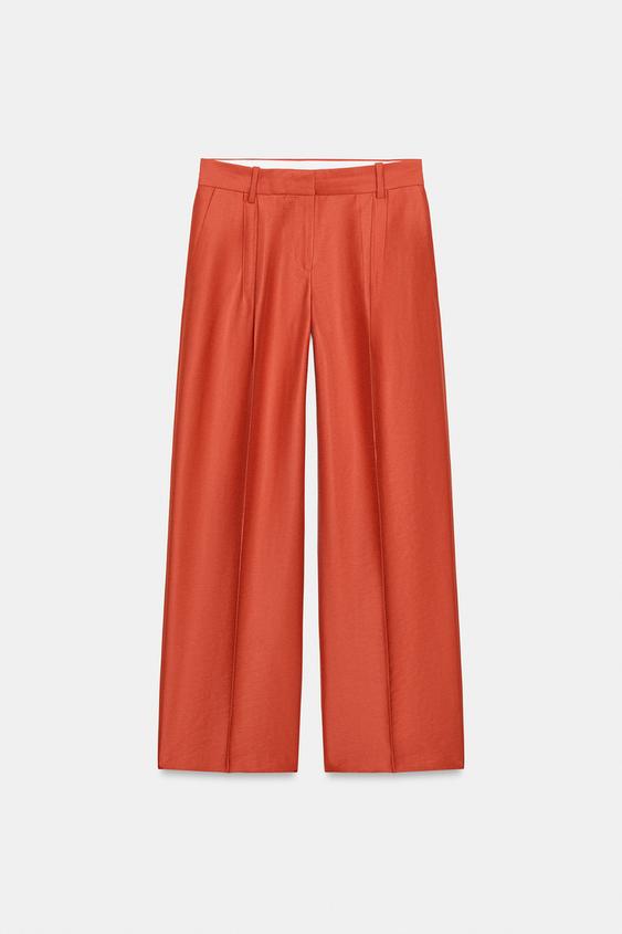 ZARA БРЮКИ ПРЯМОГО КРОЯ С ЗАЩИПАМИ, ТЕМНО-ОРАНЖЕВЫЙ