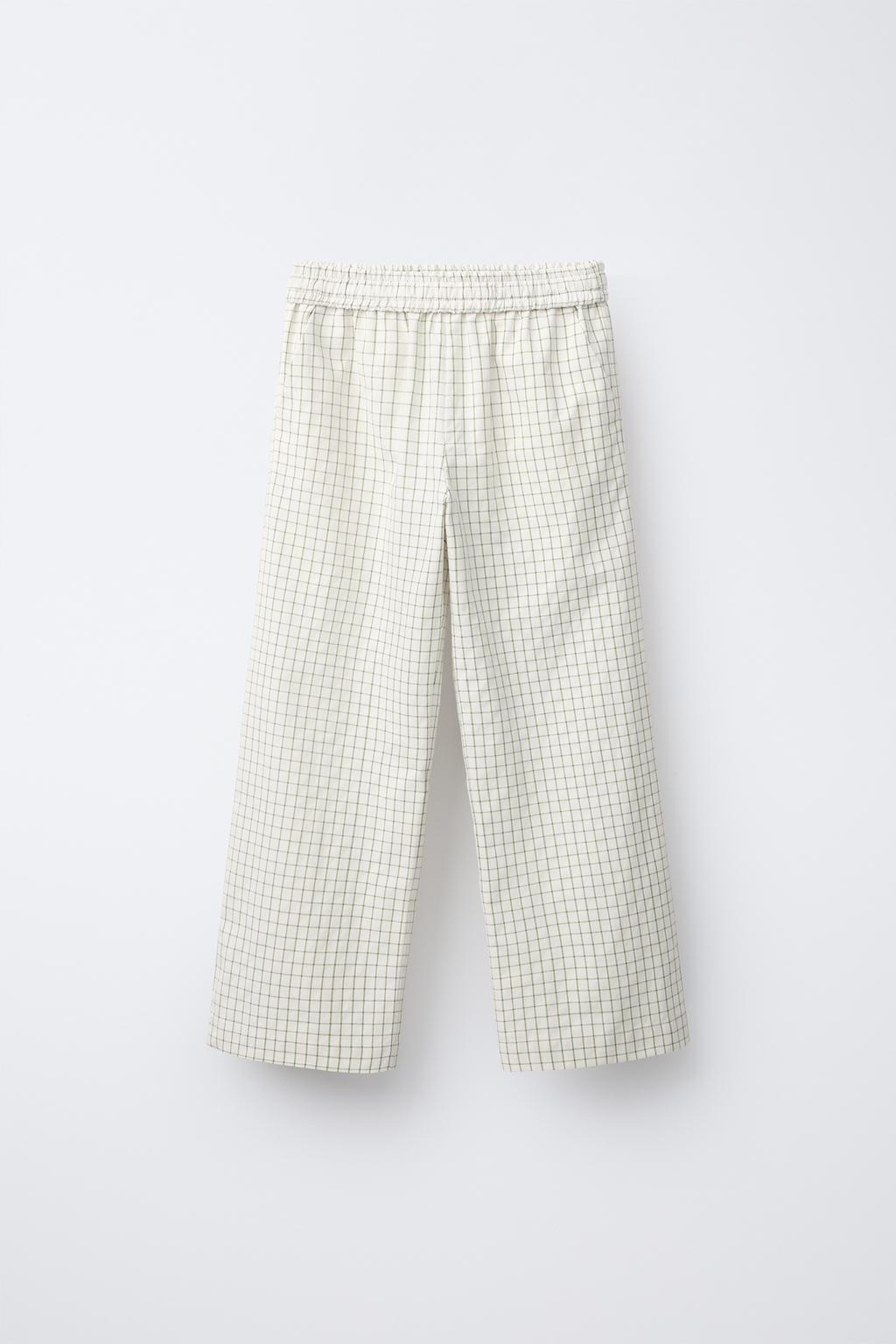 ZARA БРЮКИ ПРЯМОГО КРОЯ В КЛЕТКУ, ЭКРЮ